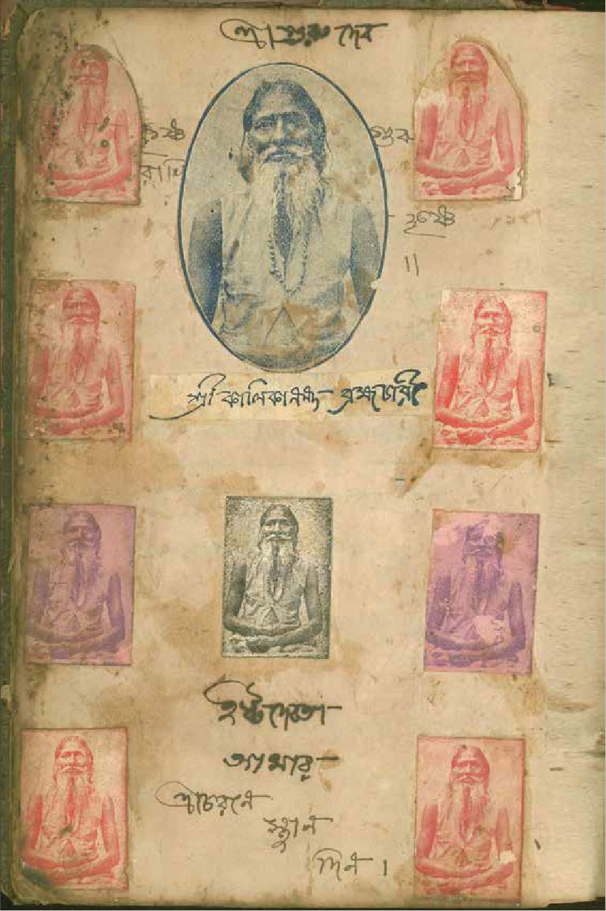 মূলত নানা সময়ে আবিষ্কৃত, প্রাপ্ত, আকৃষ্ট হওয়া মন্ত্রের সম্ভার এই ডায়েরি। তবু তাকে ‘মাই প্রেয়ার্স’ নাম দিলে পূর্ণতা পায় না এই আকর। এই স্ক্র্যাপবুক ইন্দুবালার একান্ত নিজস্ব জগৎ। তিনি কোন বস্তুকে গ্রহণ করছেন আর কোনটাকেই বা বর্জন করছেন; তাঁর গভীর বিশ্বাস; রুচি; চাহিদার তার এক চূড়ান্ত তালিকা এই খাতা। কখনও তা ইন্দুবালার অতি পছন্দের মন্ত্রের সম্ভার, কখনও তাঁর প্রিয় বাণিজ্যিক পণ্য সামগ্রীর এন্ডর্সমেন্ট– ৭৬ নং কলেজ স্ট্রিট ও ৩৬ নং ব্রজনাথ মিত্র লেনের শীতলা মিষ্টান্ন ভাণ্ডার; শিব-শক্তি চন্দন ধূপ; আরাধনা ধূপ; কালী স্বদেশী দেশলাই। কখনও আস্ত এক গ্রাফিক নভেল– খাতার শেষাংশে অন্যত্র ছাপা সম্পূর্ণ ‘শ্রী গৌরাঙ্গের আবির্ভাব’ পাতা কেটে জুড়ে জুড়ে নির্মিত। কখনও বা ইষ্টদেবতার সঙ্গে ইন্দুবালার ডায়ালগের রেকর্ড। ১১ নম্বর পৃষ্ঠায় দেখা যায় লক্ষ্মী, শীতলা, শিব-পার্বতী, দুর্গা, কালী, সম্ভবত ক্যালেন্ডার থেকে কেটে নিয়ে সাঁটা অমাবস্যা তিথিতে চড়ক-এর ছবির স্ট্যাম্প সাইজ কাট-আউটের একাধিক দেবী প্রতিমার লিথোগ্রাফ। ‘পথ দেখাও। মা দয়া কর।’ শ্রী গুরুদেব, শ্রী কালিকানন্দ ব্রহ্মচারীর ছবি সাঁটা পাতায় নীচে লেখা– ‘ইষ্টদেবতা আমার, শ্রীচরণে স্থান দিন।’ কালিকানন্দর বড় ছবির দু’-ধারে ও নিচে মোট ন’টি ছোট ছবির পুনরাবৃত্তি হয়েছে। একই মাপের একই প্রতিকৃতি ইন্দুবালা কোথা থেকে পেলেন, তা কৌতূহল জাগায়। সেই সময় তো স্টিকার কিনতে পাওয়া যেত না। তাহলে একই ছবি বারবার তিনি ধৈর্য ধরে, সময় নিয়ে জোগাড় করেছেন নিশ্চয়ই। তবে যা বিস্মিত করে তা হল কাট-আউট ব্যবহার করে ডেকরেশন নিয়ে তাঁর এই অবসেসিভ রিপিটেশনস।