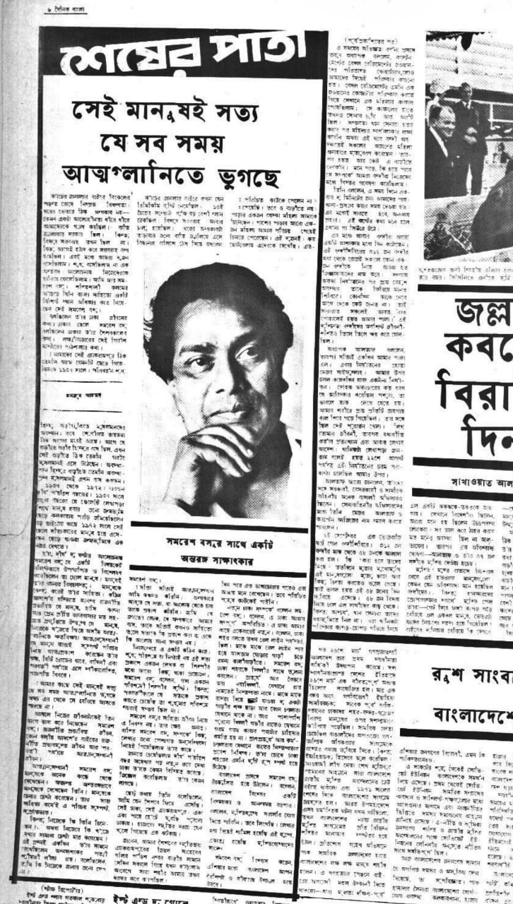 বাংলাদেশে আগমন উপলক্ষে ‘দৈনিক বাংলা’ পত্রিকায় ছাপা হয় সমরেশ বসুর সাক্ষাৎকার, ১ এপ্রিল ১৯৭২