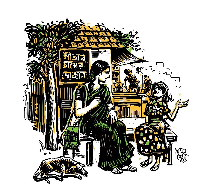 হাওড়া স্টেশন থেকে সটান এসে ঢুকে পড়লে এককাপ চাও খাওয়া যেত না সোমবার। দ্বিতীয় পিরিয়ডে নেমেছি সেই চায়ের তেষ্টায়। নিচের গাড়িবারান্দায় দেওয়াল ঘেঁষে গীতাদের একটা ছোট্ট চায়ের দোকান ছিল। ছোট ছোট তিন ভাইবোন মিলে চালাত। ওদের এই দোকান নিয়ে কল্লোলের (দাশগুপ্ত) একটা চমৎকার গান আছে ‘গীতাদের চায়ের দোকান’ বলে। দেওয়াল ঘেঁষে একটা টেবিল আর সামনে ফুটপাথে গোটা দুই-তিন যেমন-তেমন বেঞ্চি। বসে চায়ের গেলাসটা হাতে নিয়েছি, হঠাৎ কোথা থেকে উদয় হল ছোট্ট এক মেয়ে। পায়ে চটি, সুন্দর ফ্রক। মাথায় উমরোঝুমরো চুল। এসে আমার পাশে বসেই প্রশ্ন, ঈষৎ ধমকের সুরে,