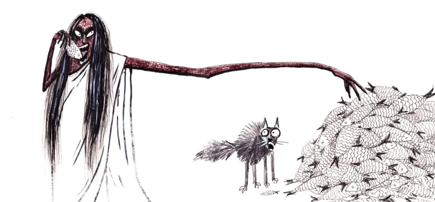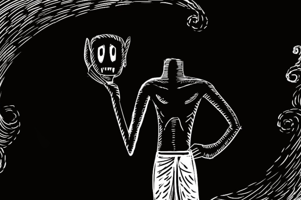 তালগাছে কাঁদির মতো ঝুলছে একটা লম্বা হাতওয়ালা বুড়ি। মাথার চুল ঝাঁটার কাঠির মতো খাড়া খাড়া। ভয়ানক কালো কুচ্ছিত। চোখদুটো গুমসো আগুনের মালসা। গায়ে শতছিন্ন কানিচুনি। এক হাতে তার কাপড়চোপড়। ল্যাজওলা ঘুড়ির মতো গাছে দুলছে।