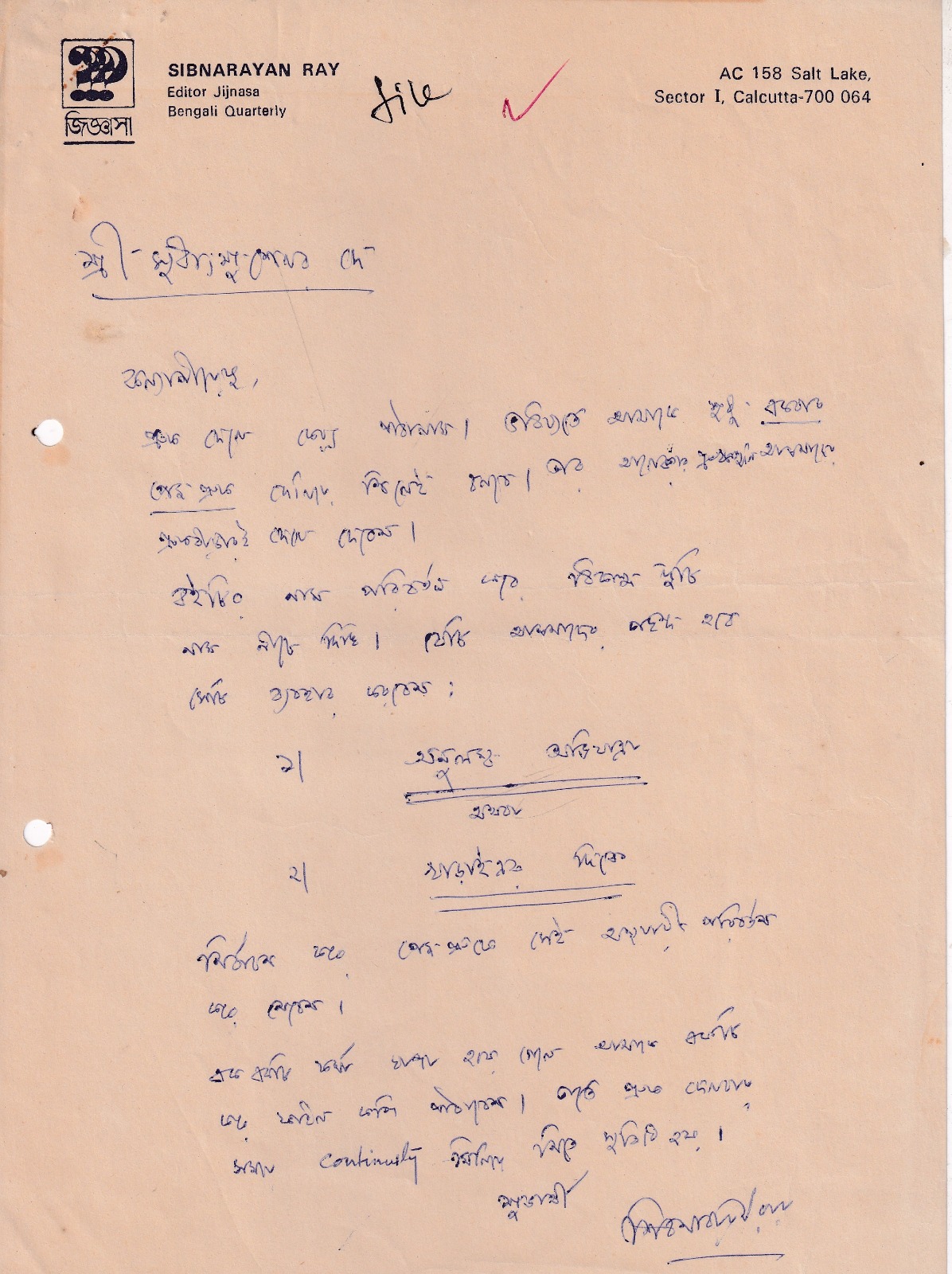 শিবদার এই ‘কল্যাণীয়েষু’ সম্বোধনটা একেবারেই পোশাকি ছিল না। তিনি হয়তো আমার সঙ্গে খুব হাসি-রসিকতা কখনও করেননি, কিন্তু তাঁর সঙ্গে দেখা হলেই টের পেয়েছি, তিনি আমাকে কতটা স্নেহ করেন। শান্তিনিকেতনে তাঁদের ৬৩, পূর্বপল্লীর ‘রুদ্রপলাশ’ বাড়িতে মনে হয় আমি কখনও যাইনি। কিন্তু সল্টলেকের বাড়িতে বেশ কয়েকবার গিয়েছি। তবে এই চিঠিতে বইয়ের নাম কেন মাঝ পথে পরিবর্তন করতে হল, তাও আমার মনে পড়ছে না। কিন্তু তাঁর দেওয়া নাম দু’টির মধ্যে দ্বিতীয় বিকল্পটিই বেছে নেওয়া হয়েছিল।