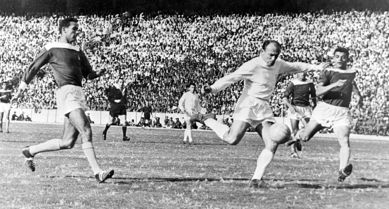 ’৫২-য় টুইস্ট। এই মিলোনারিওস রিয়ালের মাঠে প্রীতি ম্যাচ খেলতে গেল। নিজের মাঠে ২-৪ গোলে হারা রিয়েল দাঁড়াতে পারল না কলম্বিয়ান ক্লাব-ঝড়ের কাছে। এবং তখনই ডি’স্টেফানোর ওপর নজর রিয়াল প্রেসিডেন্ট বার্নাবিউ-র, সঙ্গে পাখির চোখ করছে কাতালানরাও। এই দ্বিমুখী নজর, স্প্যানিশ কর্তৃপক্ষের আশ্চর্য মজাদার নির্দেশে ডি’স্টেফানোকে এক মরশুমে রিয়াল, অন্য মরশুমে বার্সেলোনার হয়ে খেলার সিদ্ধান্ত। ডি’স্টেফানো তখন ২৭ পেরচ্ছেন।