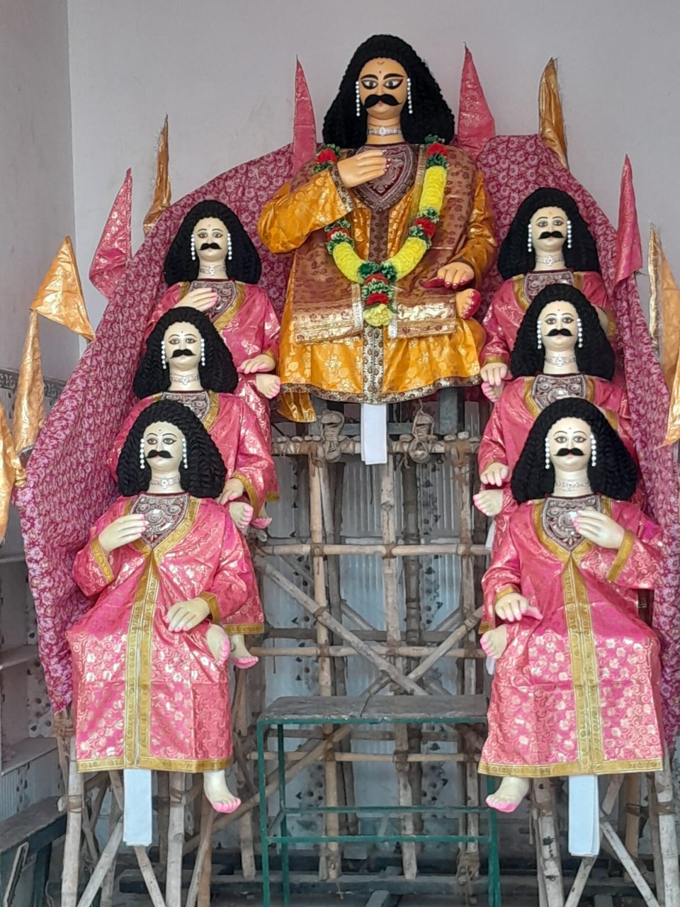 ধাপে ধাপে নেমে আসা দু’ পাশের ধাপিতে আসীন চার জোড়া রাজার ভাই। একই রকমের দেখতে হলেও আকারে-প্রকারে ছোট। পোশাক-আশাক ভিন্ন রীতি ও রঙের।