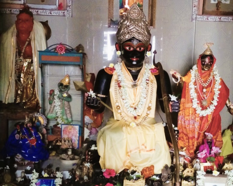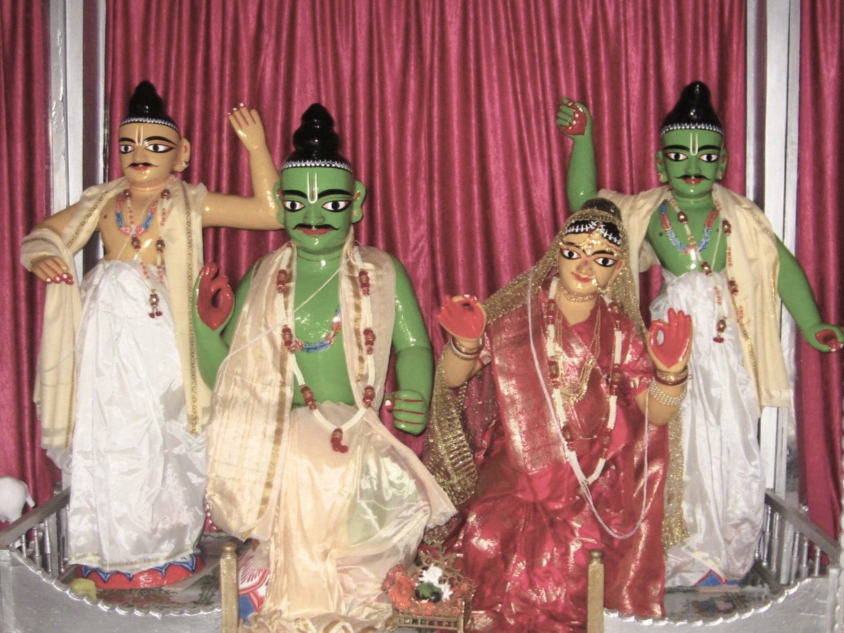 প্রশ্ন উঠতে পারে, তীরধনুক হাতে এই মূর্তি কামদেবেরও হতে পারে। কিন্তু এই মূর্তিতে কামদেবের কোনও অস্তিত্ব নেই। পাদপীঠে দেখা যায় ভক্তের ভূমিকায় হাঁটু গেড়ে বসে আছে হনুমান, জাম্বুবান কিংবা সুগ্রীব। সুতরাং এই মূর্তি রাম-লক্ষ্মণ-সীতার।