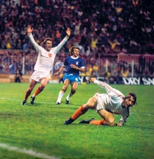 ’৭৪ মানেই কি অপ্রাপ্তি? ট্রফিহীনতাই সবকিছু? সেই মুহূর্তগুলো? পাসগুলো? এক একটা করে ম্যাচ ধরে এগনো, ক্রমশ ওপরে ওঠা, দুই জোহানের একে অন্যকে হাতের তালুর মতো চেনা এবং পাশে গ্যারিঞ্চার মতো বাঁকা পায়ের ক্ষমতা নিয়ে ম্যাজিক দেখানো সেইসময়ের অন্যতম শ্রেষ্ঠ ‘মিডফিল্ড-জেনারেল’ উইম ভ্যান হ্যানাজেম, লেফট উইঙ্গার-ফরোয়ার্ড রব রেনসেনব্রিঙ্ক, রাইট উইঙ্গার জনি রেপের মতো মুখকে পাওয়া– এসব মূল্যহীন?