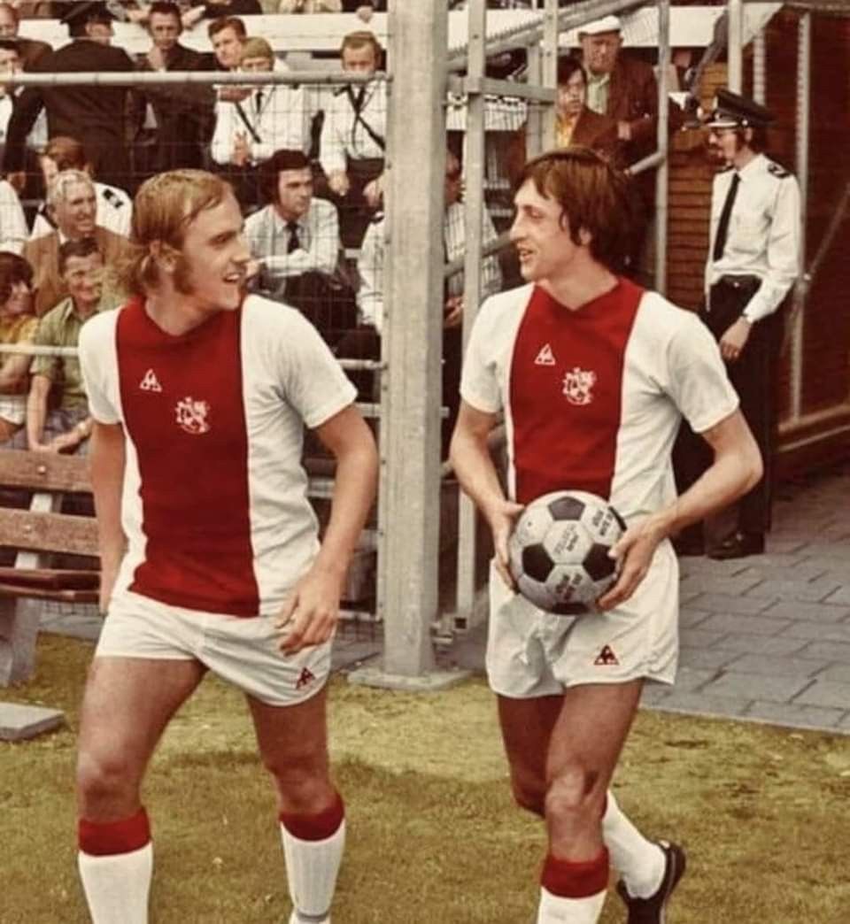 আগে, পরে এভাবেই কষ্ট, আচমকা আঘাত, কিছুতেই মেনে না-নাওয়া জেদ, কমলা পতাকা এবং ‘দ্য বিউটিফুল গেম’– দুই জোহান বাড়ছিলেন আলাদা আলাদা। ’৬৮ থেকে ’৭০ অবধি রেসিং ক্লাব হিমস্টেডের রাইট ব্যাক ১৯ বছরের জোহান নিসকেন্স ’৭০-’৭১-এ গেলেন সেই আয়াক্সে। কোচ রিনাস মিশেলের উত্তরসূরি স্টেফেন কোভাক্সের চোখ চকচক করে উঠল। একটা বছর খেললেন রাইট ব্যাকে। নাহ্, কোভাক্স আর পারলেন না। বললেন, ‘তুমি সেন্ট্রাল মিডফিল্ডে এসো।’ একটা কথা। ওটুকুই। জোহান মানিয়ে নিলেন অবিশ্বাস্য দক্ষতায়। ’৭০ থেকে ’৭৪ পর্যন্ত আয়াক্স। ’৭১-এর ফাইনালে প্যানাথানিকোস, ’৭২ ও ’৭৩-এ দু’-দু’বার ইন্টার মিলান– পরপর তিনবার ইউরোপিয়ান কাপ আয়াক্সের। এবং এই আয়াক্সেই ঘরের ছেলে ক্রুয়েফ বড় হচ্ছেন, মানাচ্ছেন মিশেলের টোটাল ফুটবলের ড্রিমটার্মে।