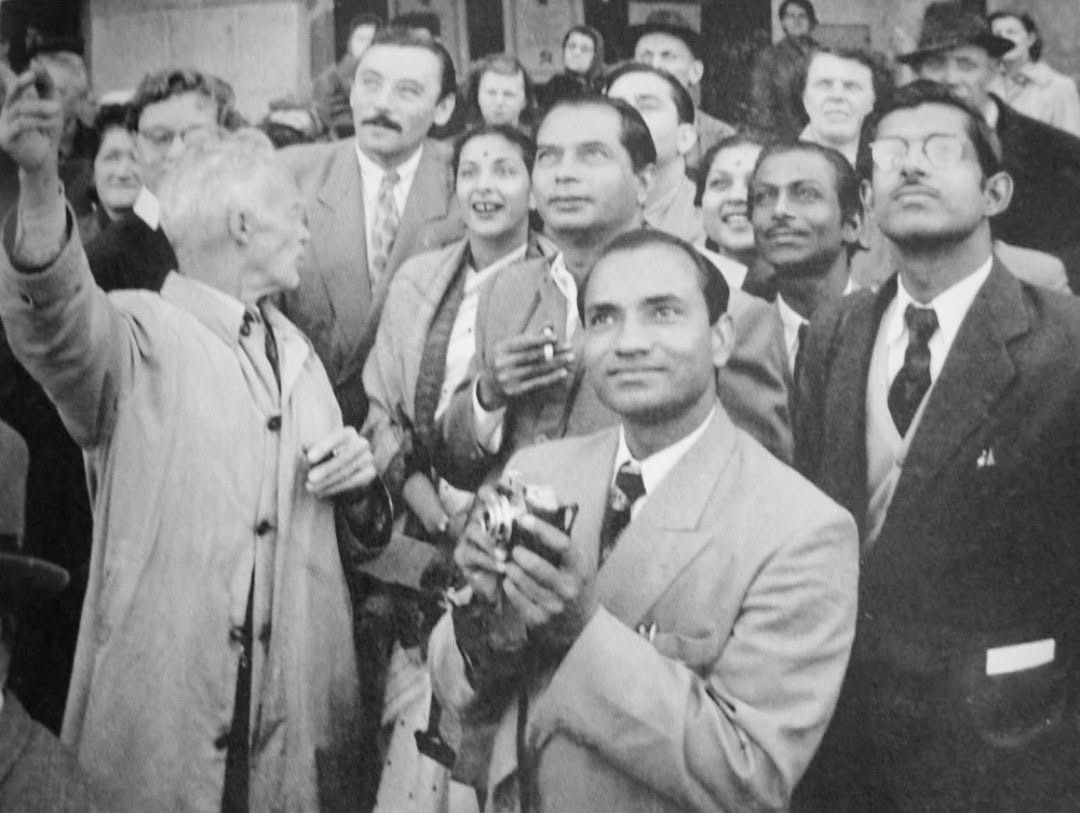 মস্কোতে বিমল রায়ের সঙ্গে হৃষীকেশ মুখপাধ্যায়, সলিল চৌধুরী, রাজ কাপুর, নার্গিস ও রাধু কর্মকার (১৯৫৯)