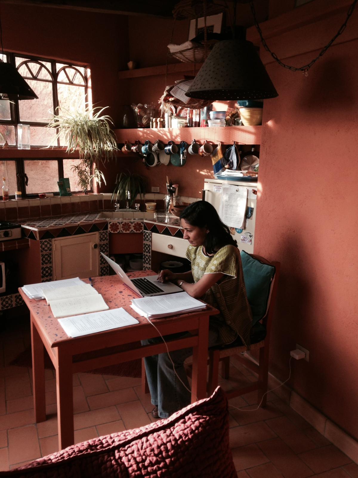 Sonia unlocked the door to the modern white cube of the library where she spent the day mostly alone; the only other person there over the winter term was Marie, who came in during the mornings and supervised Sonia….When it was dark , Sonia returned to the Gerstein Chen House and boiled ramen noodles atop an electric coil in a kitchen perpetually lit by fluorescence. After ramen , Sonia settled to writing stories for her senior thesis in literature and creative writing. Missing her family made her strongly conjure India. She began a childhood cable about a boy who climbed into a tree and lived like a monkey until he became one, a process complicated by his being mistaken for a holy hermit.