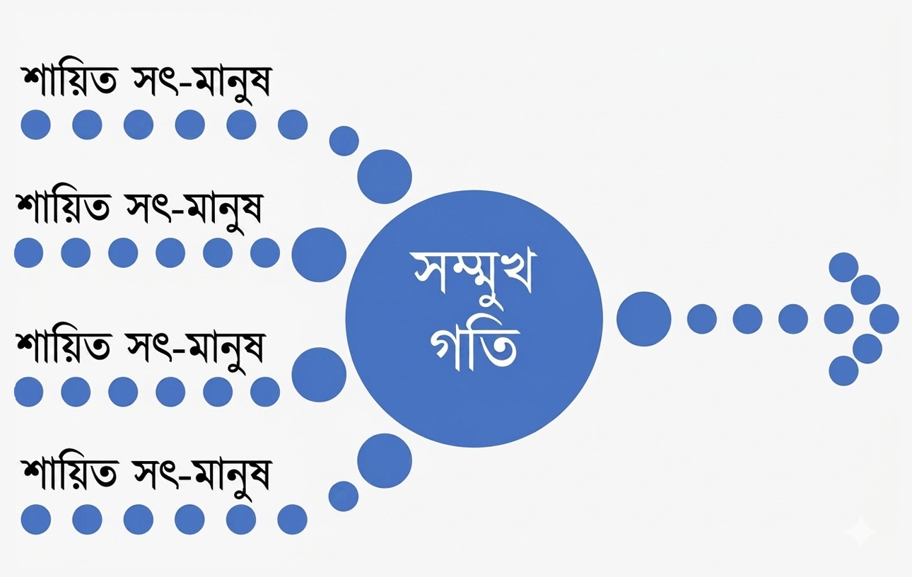 সৎ সন্তানকুলের সংখ্যা যত বেশি হবে, তত দেশের গতি। বাইরে থেকে তেল আনতে হবে না। মূক ও বধিরবৎ সৎ যুবক-যুবতীদের হাত-পা যত্ন করে বেঁধে, শুইয়ে বা দাঁড় করিয়ে রাখলেই গাড়ি সামনে এগবে অথবা আকাশে উড়বে। এদের নাম দেওয়া হবে– রাষ্ট্রীয় গতি-সেবক সংঘী। গতির জন্য বলিপ্রদত্ত সততা-নামক জ্বালানির অধিকারী এই বিশেষ মনুষ্য শ্রেণি নিভৃত সততা উৎপাদনকারী ক্যাম্পে, ক্রম উৎপাদনের মাধ্যমে দেশকে এগিয়ে নিয়ে যাওয়ার গতিময় পরিকল্পনা করেছি আমরা, ‘নব্য বঙ্গীয় সনাতনবাদী পার্টি’। এই পার্টিই দেশের ভবিষ্যৎ।