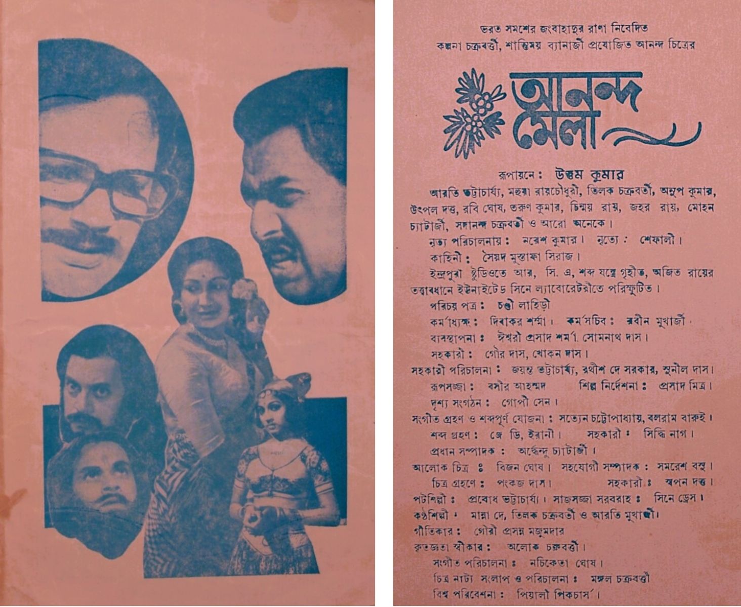 তবে সাতের দশকেই সিরাজদার উপন্যাস ‘আনন্দমেলা’ চলচ্চিত্রায়িত করেছিলেন পরিচালক মঙ্গল চক্রবর্তী। পূর্ণেন্দুদার মলাটে নিশিকান্ত হাটুইয়ের তুষার প্রিন্টিং প্রেস থেকে ছাপা ‘আনন্দমেলা’ দে’জ থেকে সিরাজদার তৃতীয় বই ছিল। বইটি তিনি উৎসর্গ করেছিলেন– ‘শ্রেষ্ঠ কমেডিয়ান/ শ্রীজহর রায়/ করকমলেষু’– লিখে। মঙ্গল চক্রবর্তীর ছবিটিতেও জহর রায় অভিনয় করেছিলেন। ছবিতে মুখ্য ভূমিকায় ছিলেন উত্তমকুমার। সেইসঙ্গে অভিনয় করেছিলেন আরতি ভট্টাচার্য, উৎপল দত্ত, রবি ঘোষ, অনুপকুমার, তরুণকুমার, মহুয়া রায়চৌধুরী, মিস শেফালি প্রমুখ। এখন দেখছি, আমি বইটি ছেপেছিলাম ১৯৭৬-এর জানুয়ারিতে– আর ছবিটি রাধা, পূর্ণ, প্রাচী প্রেক্ষাগৃহে রিলিজ করছে সে বছরের ২৩ এপ্রিল। তার মানে বই ছাপার আগেই চলচ্চিত্রের কাজ শুরু হয়ে গিয়েছিল।