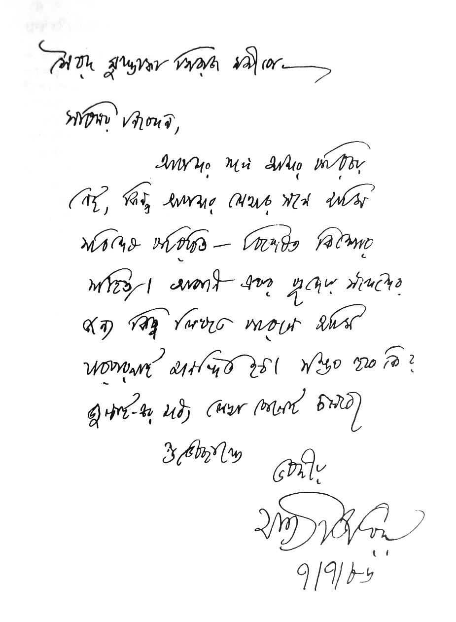 শারদীয় ‘সন্দেশ’ পত্রিকায় লেখার জন্য সিরাজদাকে আমন্ত্রণ জানিয়ে সত্যজিৎ রায় একটি চিঠিতে লিখেছিলেন–