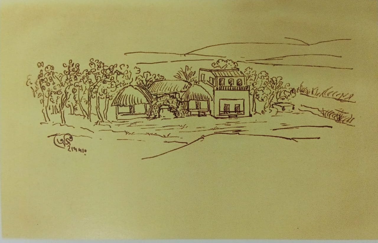 সেটি আছে একটি পুরাতন তালগাছের চরণ বেষ্টন করে। তাই তার নাম হয়েছে ‘তালধ্বজ’। এটি যেন মৌচাকের মতো, নিভৃতবাসের মধু দিয়ে ভরা। লোভনীয় বলেই মনে করি, সেইসঙ্গে এ-ও মনে হয় বাসস্থান সম্বন্ধে অধিকারভেদ আছে; যেখানে আশ্রয় নেবার ইচ্ছা থাকে সেখানে হয়তো আশ্রয় নেবার যোগ্যতা থাকে না।