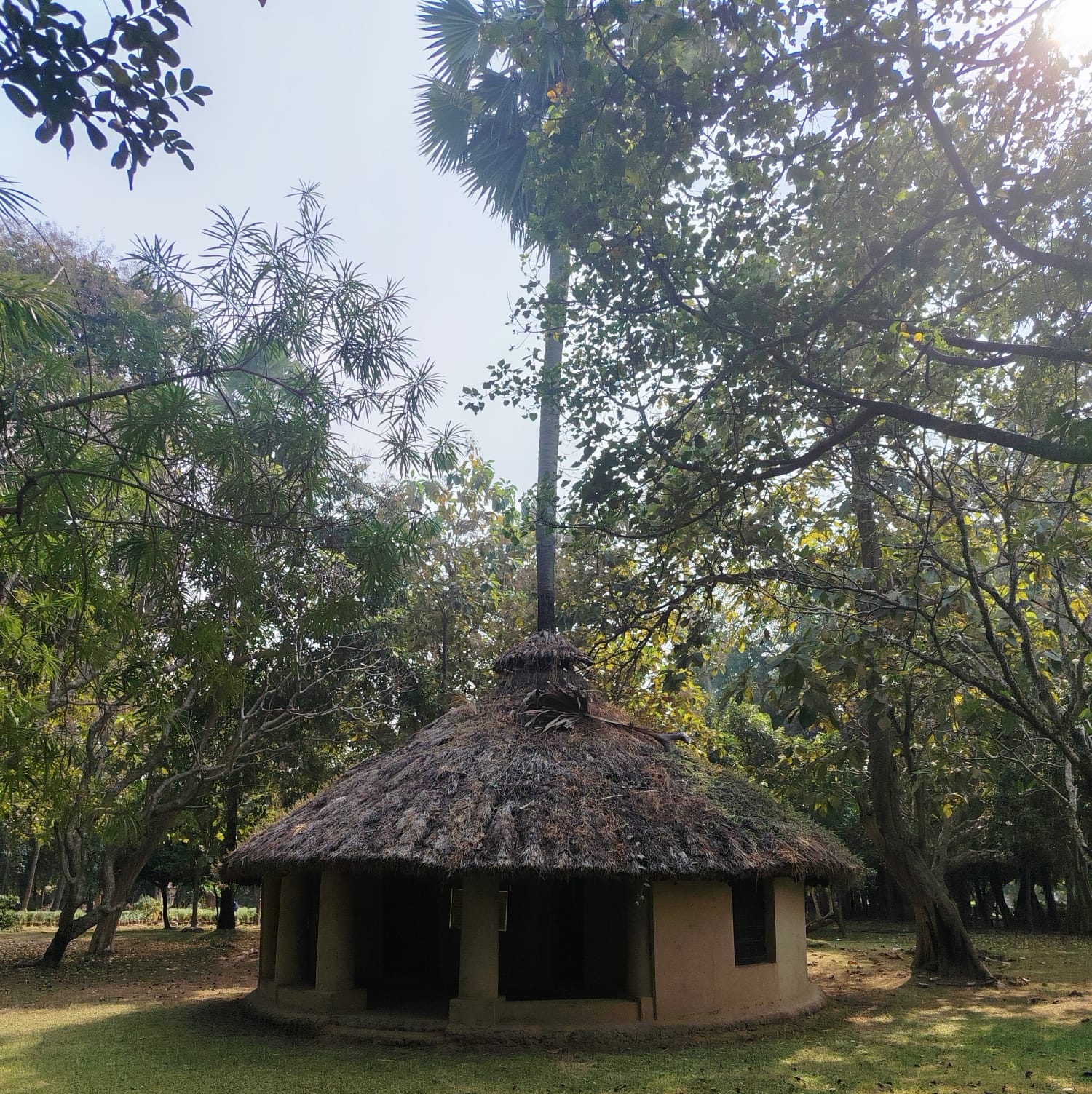 আশ্রমের প্রকৃতি শুধু নয়, তার দৃশ্যও বদলে যায় সময়ের সঙ্গে সঙ্গে। শান্তিনিকেতন বাড়ি ছাড়া একসময় প্রায় সব বাড়িই ছিল মাটির আর চালা ছিল খড়ের। ‘দেহলী’ বাড়ি তৈরি হয়। গুরুপল্লীর মাটির বাড়িগুলি বাস্তবের দাবি মেনে পাকা করতে হয়, সেকথা আমরা অবলুপ্ত গৃহগুলির কথা লিখতে গিয়ে লিখেছি। আকাশের রূপ যেন বিঘ্নিত না হয়, এটা শান্তিনেকতন আশ্রমের স্থাপত্যের একটি প্রধান লক্ষ্য ছিল। কোণার্ক, শ্যামলী, পুনশ্চ, উদীচিতে স্থাপত্যগত নানা পরীক্ষানিরীক্ষা হয়, সে বিষয়ে আমরা আগে আলোচনা করেছি।
