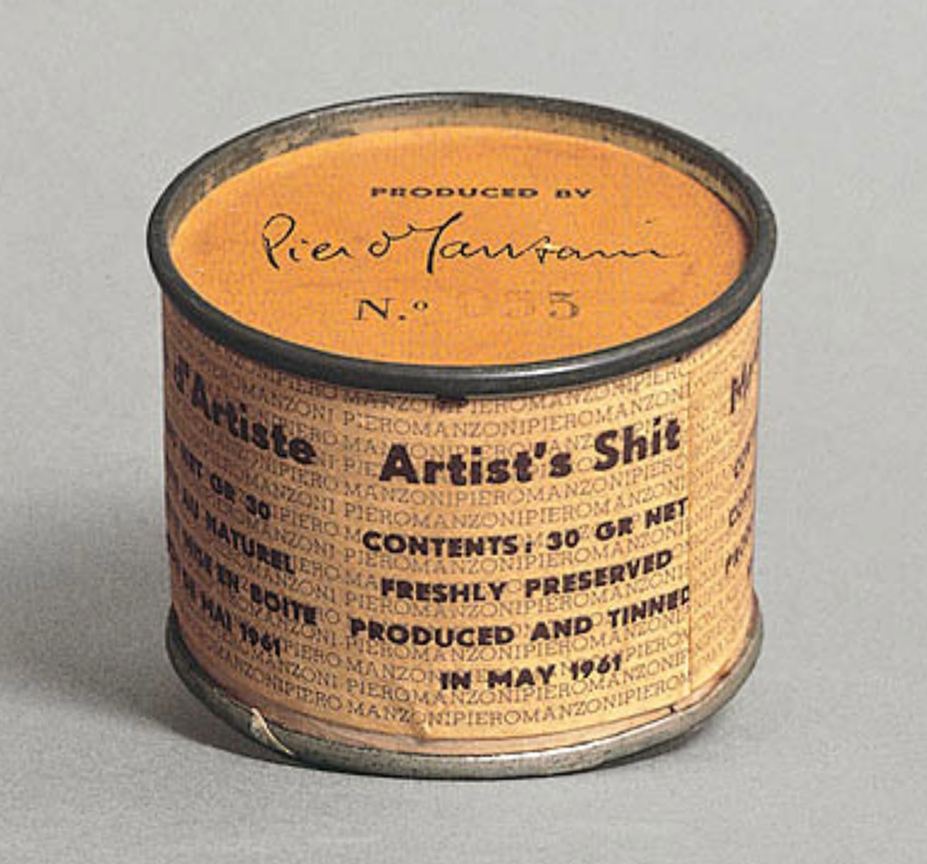 প্রথমটায় একজন ইতালীয় শিল্পী, পিয়েরো মানজোনি (১৯৩৩-১৯৬৩), যিনি আধুনিক শিল্পের প্রতি বিদ্রুপাত্মক দৃষ্টিভঙ্গির জন্য সর্বাধিক পরিচিত। তাঁর কর্মকাণ্ডের বর্ণনায় বলা হয়: ‘এ নিছক রসিকতা, শিল্প বাজারের একরকম প্যারোডি এবং কনজিউমারিজমের তৈরি ভোগবাদে উৎপন্ন বর্জ্যের সমালোচনা’।