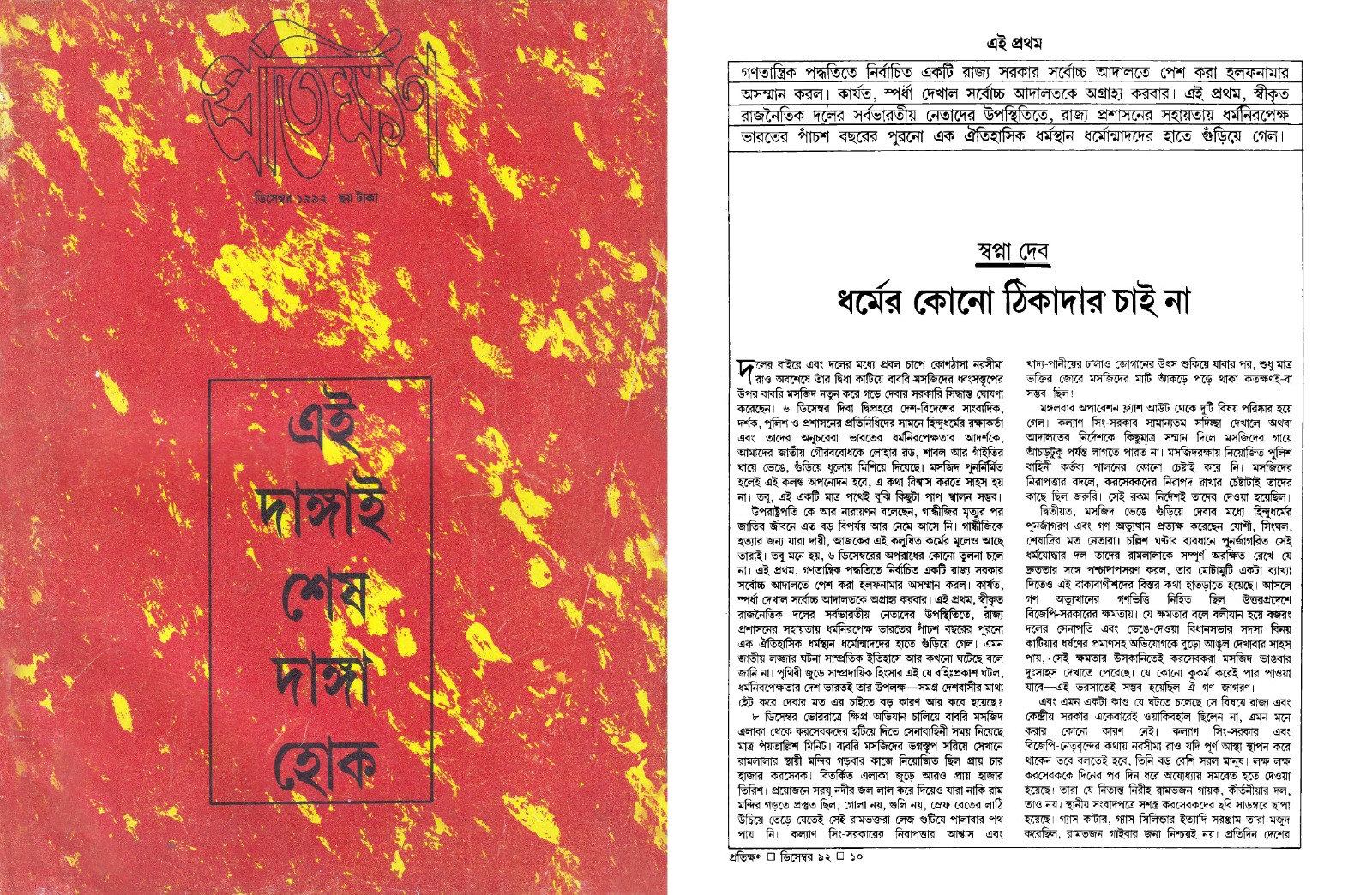 ১৫ ডিসেম্বর, প্রয়াত হয়েছেন প্রতিক্ষণ পত্রিকার সম্পাদক-সাংবাদিক স্বপ্না দেব। ১৯৮০-র দশকের মাঝামাঝি, স্বপ্না দেব ঝলমলে এক নক্ষত্র, তেজে, সাহসে, রূপে চারদিক আলো করে থাকেন। দুঃসাহসিক মিশনে গিয়ে তুলে নিয়ে আসছেন দেশের জ্বলন্ত খবর, অথচ ঘরোয়া সাজে, শাড়ি, টিপ হাতের বালার সঙ্গে কোনও বিরোধ নেই। মুখে হাসি। কথা বললেই বোঝা যেত মানুষটির ব্যক্তিত্বের ধার কেমন। ভোপাল গ্যাস ট্রাজেডির বিস্তৃত অনুসন্ধান বেরিয়েছে ‘প্রতিক্ষণ’-এ।