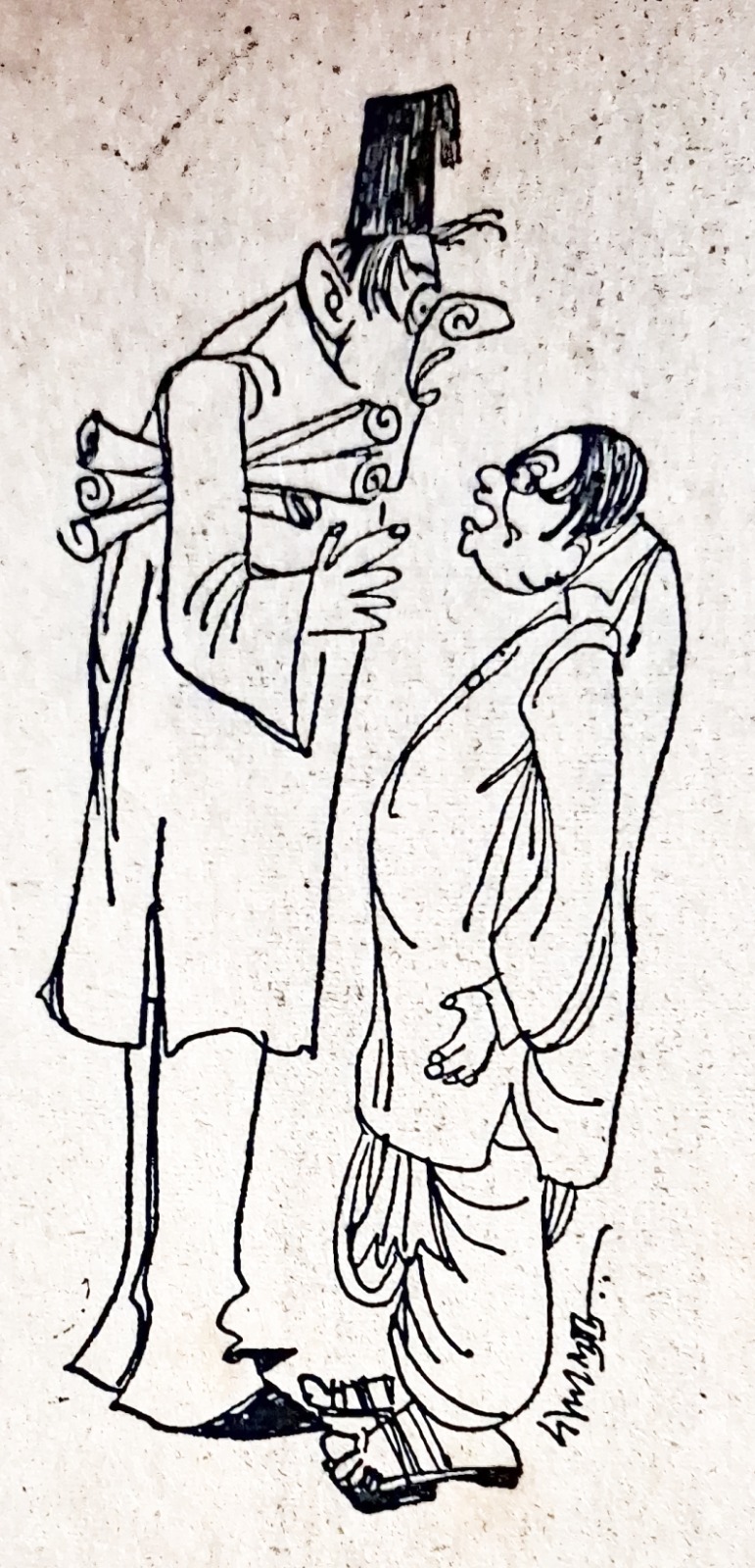 একই গল্প বিভিন্ন সংকলনের অন্তর্ভূক্ত হবার সময় ছবি এঁকেছেন পৃথক শিল্পীরা– ফলে সেইসব গল্পের স্বাদ পরিবর্তিত হয়েছে লক্ষ্যণীয়ভাবে। সেইরকম একটি উদাহরণ– তাঁর বিখ্যাত গল্প ‘মই নিয়ে হইচই’-এর সঙ্গে ছবি এঁকেছেন রেবতীভূষণ (‘নাক নিয়ে নাকাল’ এশিয়া পাবলিশিং কোম্পানি, ১৩৬৪)। আবার সেই একই গল্প যখন তাঁর ‘যত হাসি ততই মজা’ (দেব সাহিত্য কুটীর) বইয়ে প্রকাশিত হয় তখন সেখানে ছবি আঁকছেন বলাইবন্ধু রায়। এরকম আরও বেশ কিছু উদাহরণ দেওয়া যেতে পারে। আগ্রহী পাঠক তা এতদিনে নিজের মতো করে খুঁজে পেয়েছেন নিশ্চিত। আবার একই গল্প ভিন্ন শিরোনামে একটু পরিবর্তিত চেহারায় যখন প্রকাশিত হচ্ছে তখন অন্য ছবির সংযোজনে তার স্বাদ একেবারেই বদলে গেছে– তাও নিশ্চয়ই অনেকেরই দেখা হয়ে গিয়েছে।