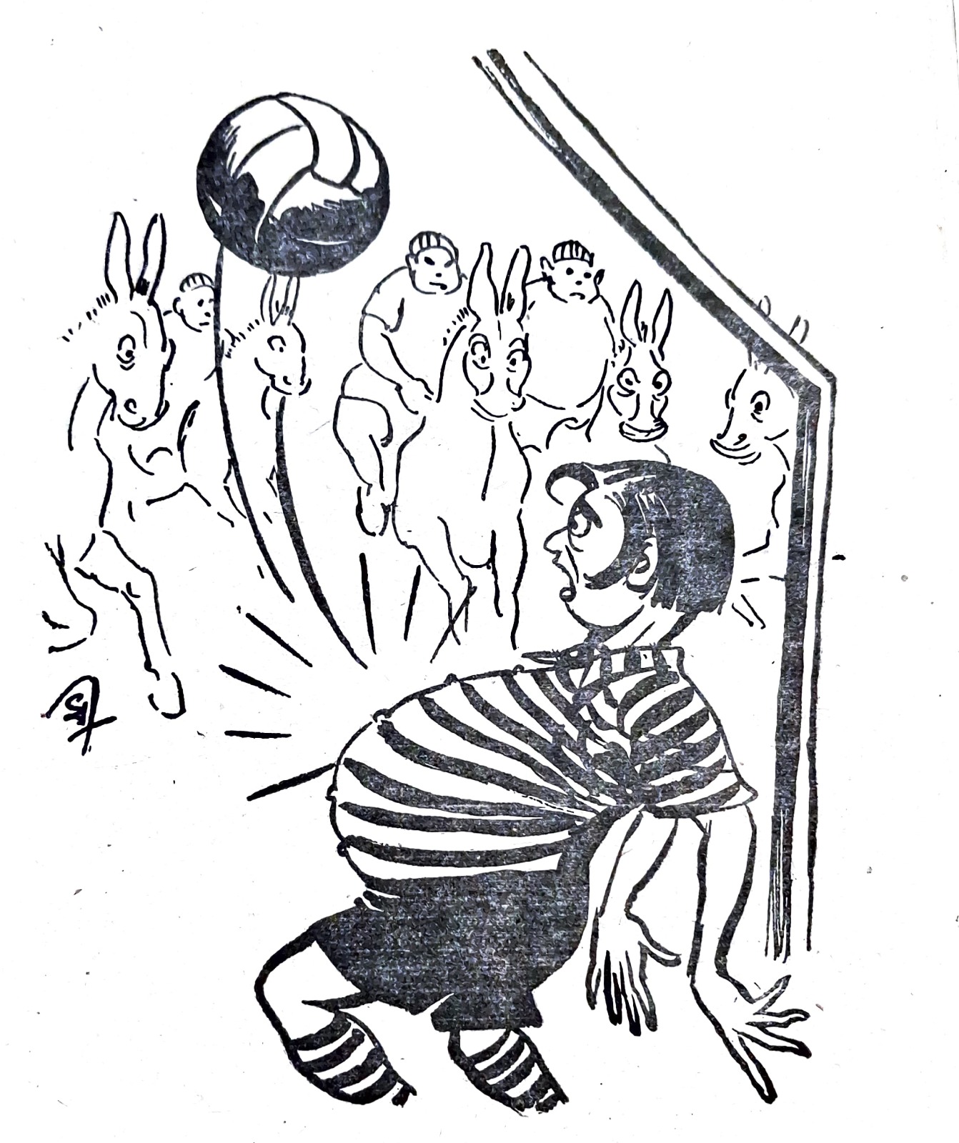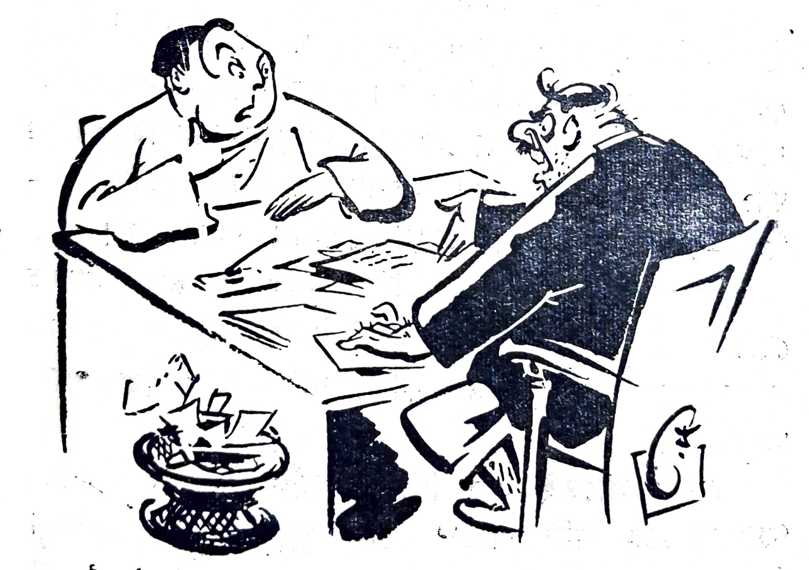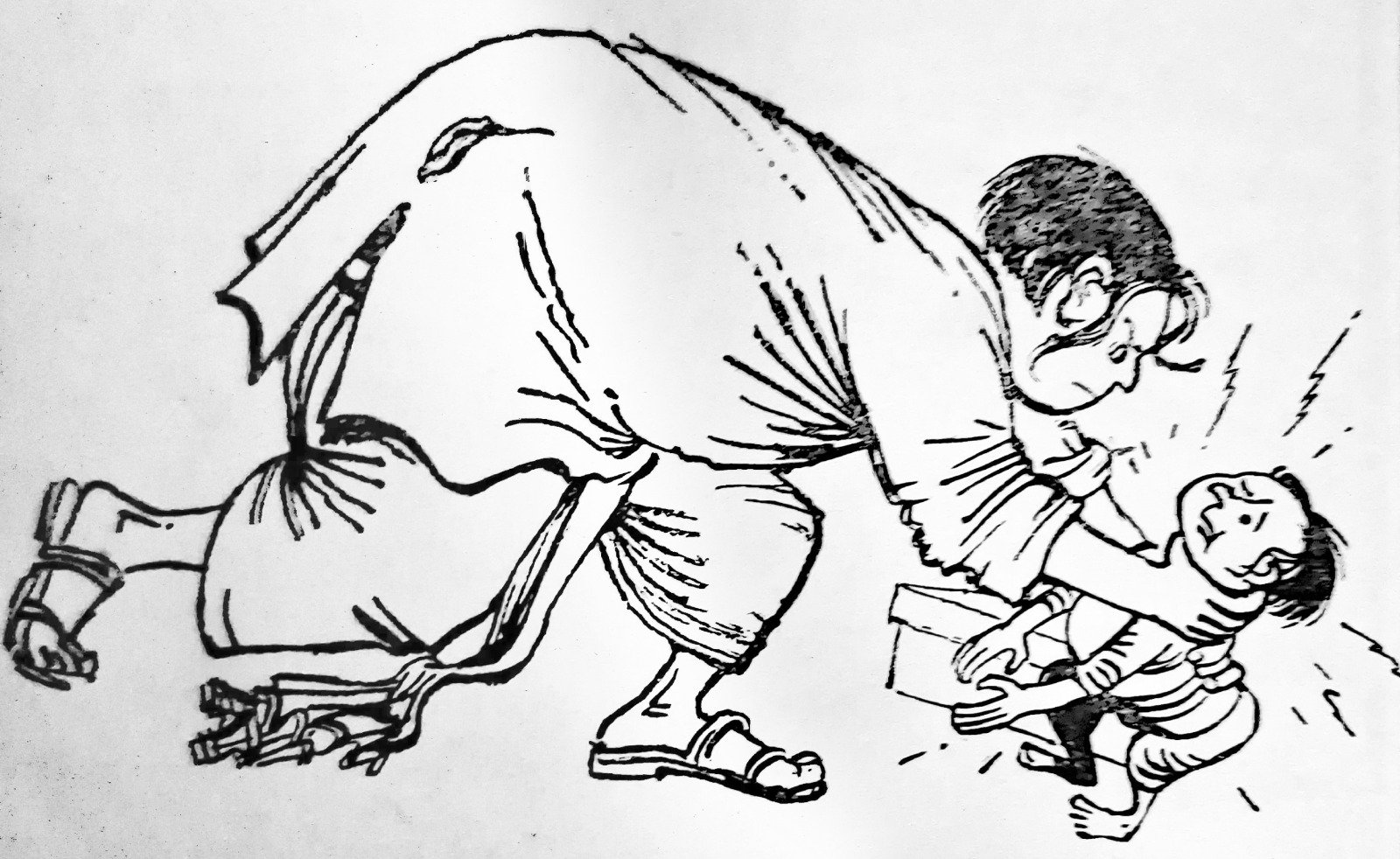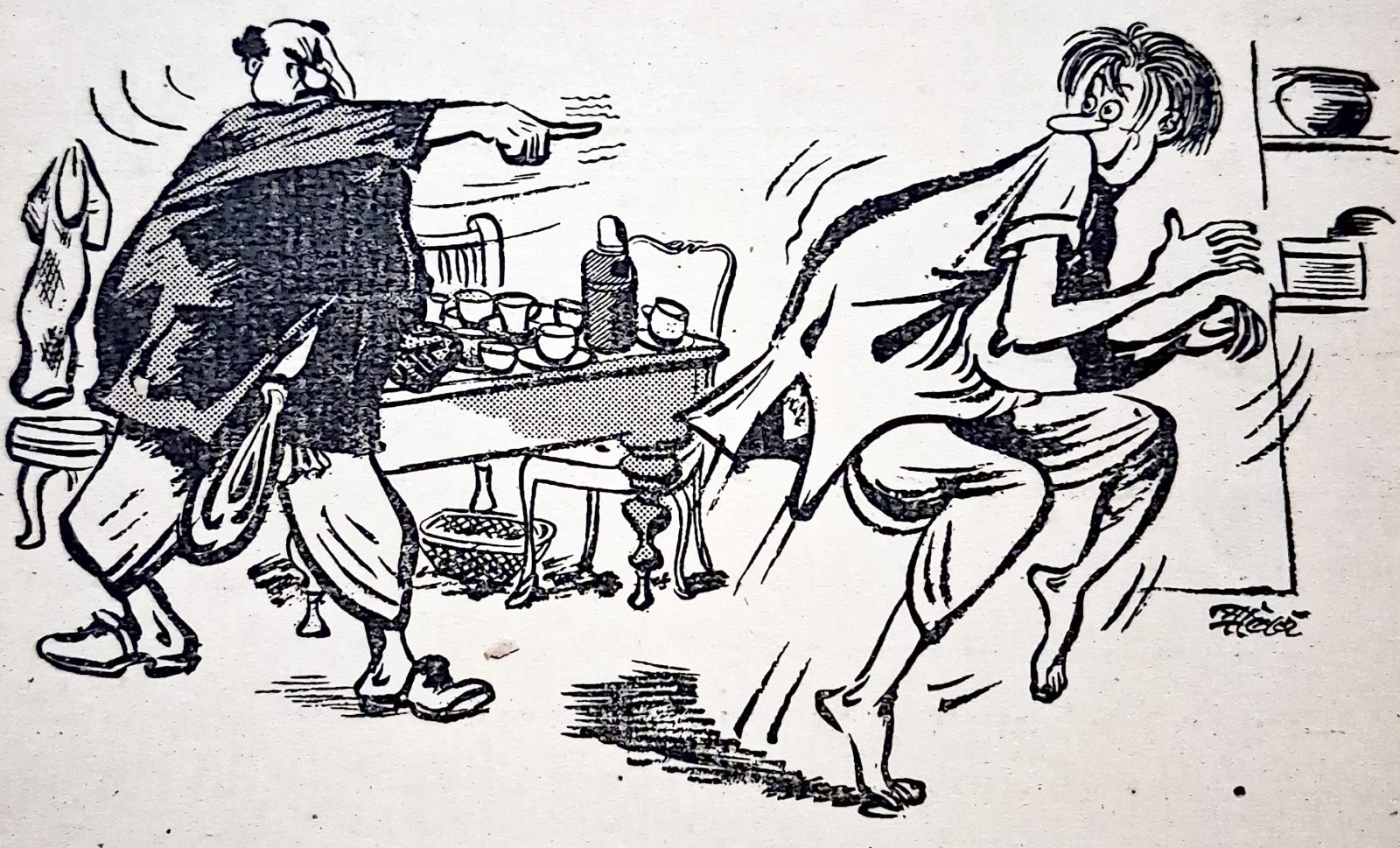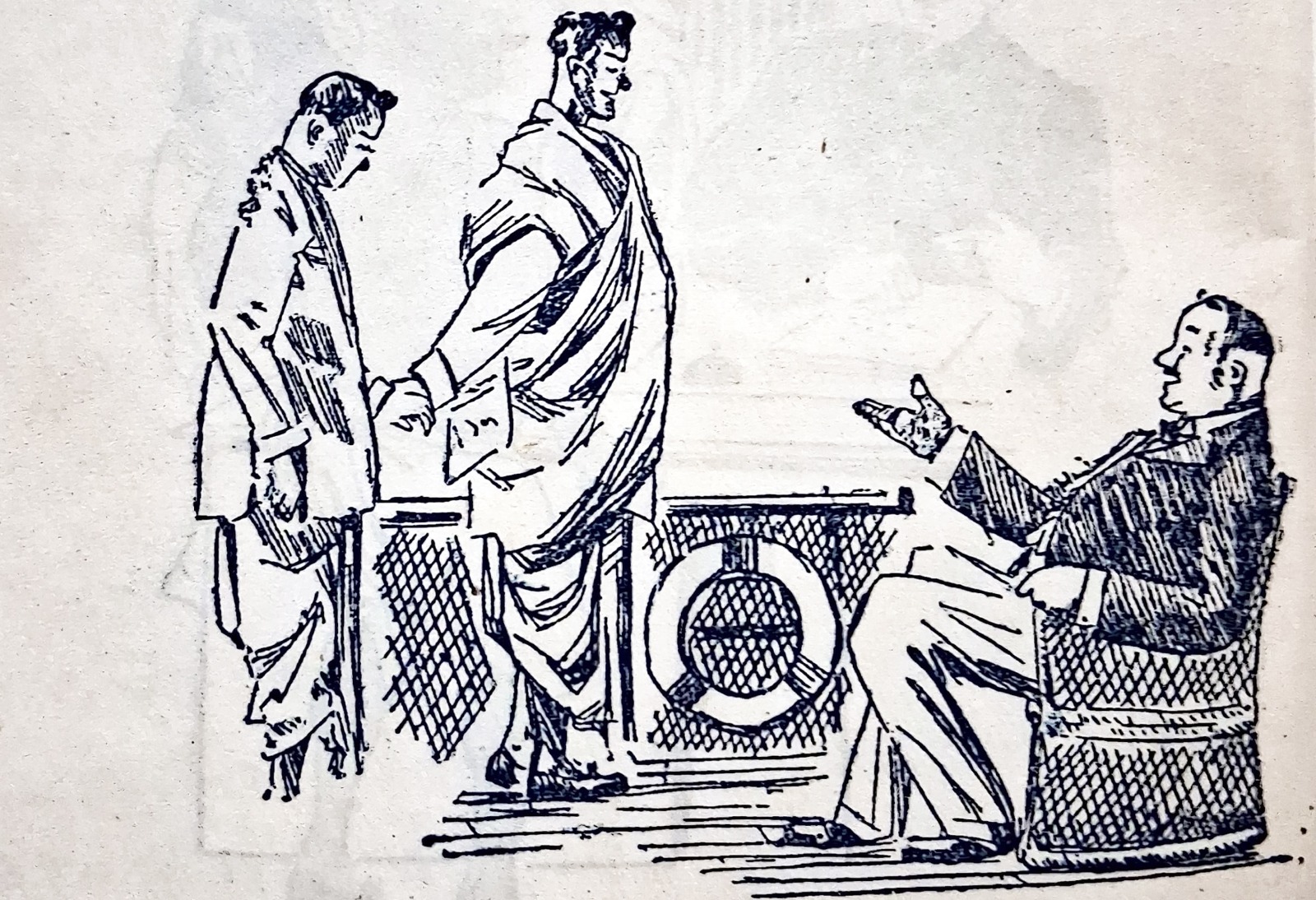 হর্ষবর্ধন-গোবর্ধনের গল্পের সঙ্গে ছবি আঁকার সময় প্রারম্ভিক সন্ধানপর্ব চলেছিল অনুরূপভাবে দীর্ঘদিন। সেই শিল্পী যদি পিসিয়েল-এর মতো দক্ষ ব্যঙ্গচিত্রকর হন, তা হলেও। দি বুক সোসাইটি প্রকাশিত ‘যুদ্ধে গেলেন হর্ষবর্দ্ধন’ (১৩৪৫) বইতে পিসিয়েলকৃত অলংকরণে হর্ষবর্ধনকে দেখা যায় চারটি চেহারায়। কখনও তাঁর মাথায় চমৎকার পরিপাটী-কেশভার, কখনও তিনি টাকসর্বস্ব প্রৌঢ়, কখনও সুদর্শন ধুতি-চাদর পরা মধ্যবয়সি, কখনও বা প্রায় প্রৌঢ় রাশভারী এক ব্যক্তি। আশ্চর্য ব্যাপার এই যে, ‘রংমশাল’ পত্রিকায় প্রায় একই সময় ধারাবাহিকভাবে প্রকাশিত হেমেন্দ্রকুমার রায়ের ‘অসম্ভবের দেশে’ উপন্যাসের অলংকরণে সেই একই ছবি ব্যবহৃত হয়েছে, যদিও দুটি লেখা সম্পূর্ণ ভিন্ন রসের তা পাঠকরা অবগত আছেন। এমনকী শৈল চক্রর্বর্তীও ‘হর্ষবর্ধনের হর্ষধ্বনি’ (ফাইন আর্ট পাবলিশিং, ১৩৪৬)-এ পরিচিত হর্ষবর্ধনকে খুঁজে পাননি– সেখানে মাথাজোড়া টাকসর্বস্ব হর্ষবর্ধন এবং অতি ষণ্ডামার্কা গোবর্ধনকে দেখা যায়।