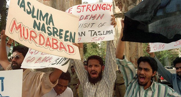 ১৯৯৪ সালে প্যারিসে ‘প্রেস ফ্রিডম’-এর একটা অনুষ্ঠানে আমাকে ডেকে নিয়ে যাওয়া হয়েছিল। বাক স্বাধীনতার ওপর অনেকগুলো অনুষ্ঠান হয়েছিল ওখানে। ফেরার সময় আমি কলকাতা হয়ে ঢাকায় ফিরি। কলকাতার একটা সংবাদপত্রে আমার একটা ইন্টারভিউ করা হয়েছিল। সেখানে আমি শরিয়া আইনের সংশোধনের কথা বলেছিলাম কিন্তু ভুল করে সেটাকে তারা কোরানের সংশোধন লিখে হেডলাইন করেছিল। ঢাকায় ফিরতেই দেখি– বিরাট আন্দোলন শুরু হয়ে গিয়েছে আমার বিরুদ্ধে। তখন বাংলাদেশের সরকার ধর্মীয় ভাবাবেগে আঘাত করার জন্য আমার বিরুদ্ধে মামলা করল এবং আমি হাইডিংয়ে যেতে বাধ্য হলাম। তারপর দেশ ছাড়তে বাধ্য করা হল। খুব অল্প সময়ের মধ্যেই ঘটনাগুলো ঘটে গেছে। আমার নতুন ফ্ল্যাট কেনার পর বোধহয় আমি ছ’মাসও থাকতে পারিনি।