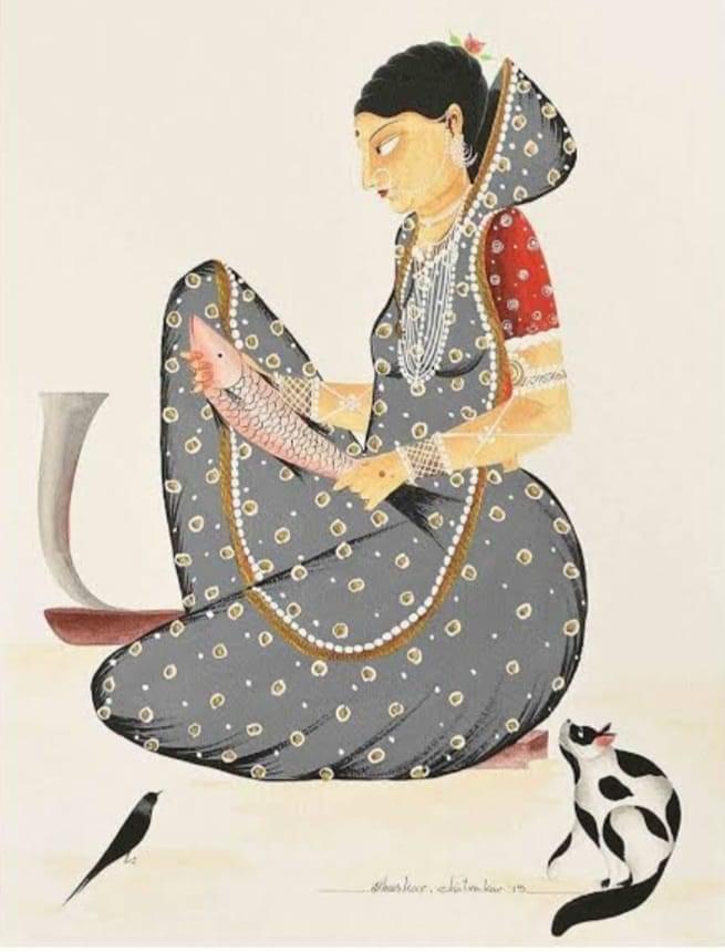 ওদিকে ভাবুন দিকি, দক্ষিণেশ্বরের নবতের ঘরে পাটের শিকেয় হাঁড়িতে রাখা আছে জিওল মাছ। কস্তাপেড়ে শাড়ি পরে মা সারদা আঁশবঁটি পেতে মাছ কুটছেন। ঠাকুরের জন্য গোলমরিচ দিয়ে ঝোল রাঁধবেন। সে মাছ কি নিছক মাছ? আচার্য প্রফুল্লচন্দ্র বলছেন, বাংলায় বৈষ্ণবধর্ম আসার পর অনেক বাড়িতে শিলপাটাতে না কি চন্দন বাটা শুরু হয়েছিল। কিন্তু মাছ? হুঁ বাবা, বিবেকানন্দ বেলুড় মঠে কিনে এনেছেন পেল্লায় কাতলা। আঁশবঁটিতে সেই মাছ কেটে চার পদ হয়েছে। মাছই শ্রীহরি। মাছই পরম ব্রহ্ম। দশাবতারের প্রথম অবতার। সময় আসে, যখন প্রলয়ে এই সমাজের জ্ঞানগম্মি, বোধবুদ্ধি সব ভেসে যায়। তখন যিনি ত্রাতা, তিনি মীনরূপ ধরে গভীর জলে জ্ঞানকে বাঁচিয়ে রাখেন, ধারণ করে রাখেন। ধৃতবানসি বেদং।