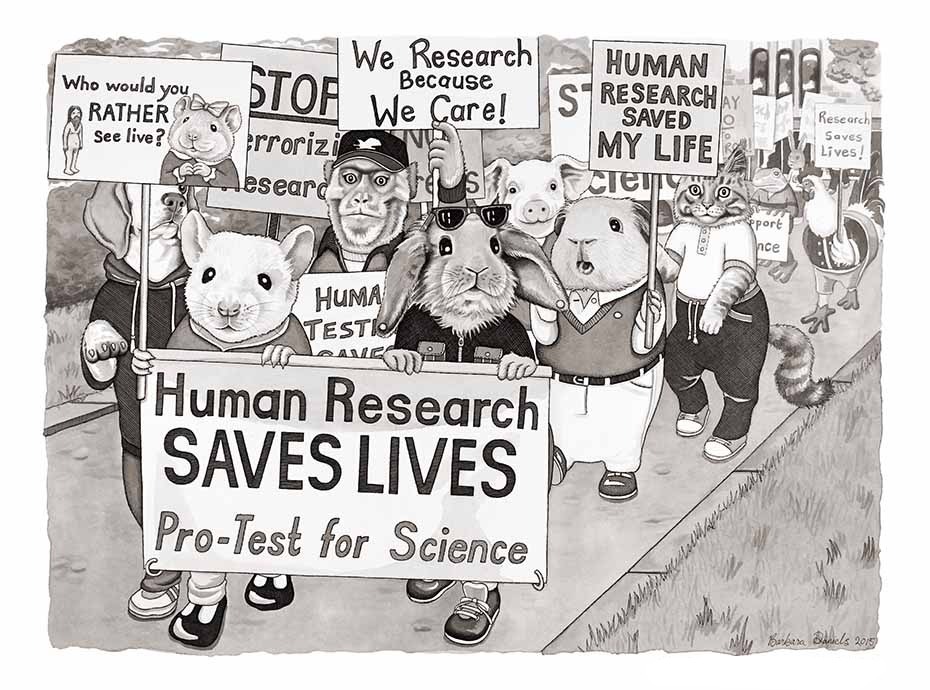 আইরিশ শিল্পী বারবারা ড্যানিয়েল তাঁর ‘ডমিনিয়ন ওভার ম্যান’ সিরিজে দক্ষ শৈলীতে বদলে দিয়েছেন সমাজে মানুষ ও পশুর অবস্থান। দেখা যাচ্ছে, মানুষের চামড়া ছাড়িয়ে নিচ্ছে লোমওয়ালা শিয়াল। লাল পতাকা নাড়িয়ে মানুষে মানুষে লড়াই বাধাচ্ছে রিংয়ের বাইরে দাঁড়িয়ে থাকা বড়মাথা ষাঁড়। মানবশিশুকে মায়ের বুক থেকে ছিনিয়ে নিয়ে যাচ্ছে বাঁকা হাসিমুখের একদল শুয়োর।