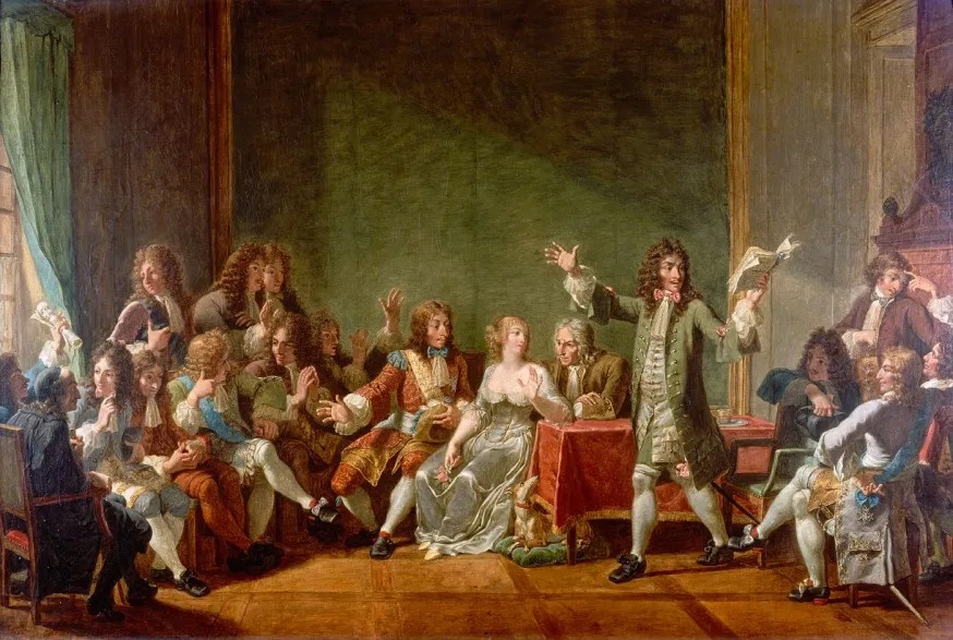 এই সালোঁর ছবিগুলিতে নারী-পুরুষের ঘনিষ্ঠ সহবাস। মলিয়্যের সালোঁর মহিলাদের নিয়ে রগড় করলেও তাঁর আপত্তি ঠিক ঘনিষ্ঠতা নিয়ে নয়। জা ফ্রাঁসোয়া ত্রয়ের আঁকা ছবিতে মলিয়্যের নিজেই মহিলাদের মাঝখানে গ্যাঁট হয়ে বসে নিজের লেখা পাঠ করে শোনাচ্ছেন দেখা যায়। এক ঝলক তাকালেই বোঝাই যায় নারী-পুরুষের এই ঘনিষ্ঠ শারীরিকতার এক ধরনের অকথিত গ্রাহ্যতা আছে, আর আছে উল্লঙ্ঘনের পুলক। কাউচের মখমল, পর্দার ভারি সিল্ক, গাউনের স্যাটিন ও ব্লাউজের লেস, নতুন উপনিবেশ থেকে আসা কফি ও চা– ইন্দ্রিয়পরায়ণতার হদ্দমুদ্দ, কিন্তু সবই আন্ডারস্টেটমেন্ট। চিঠিপত্র সংকেতে সংকেতে চলছে। কথার খেলায় লুকিয়ে রাখা ইঙ্গিত, প্রস্তাব বা প্রত্যাখ্যানের, মহিলাদের লেখাতে, স্বভাবতই বেশি।