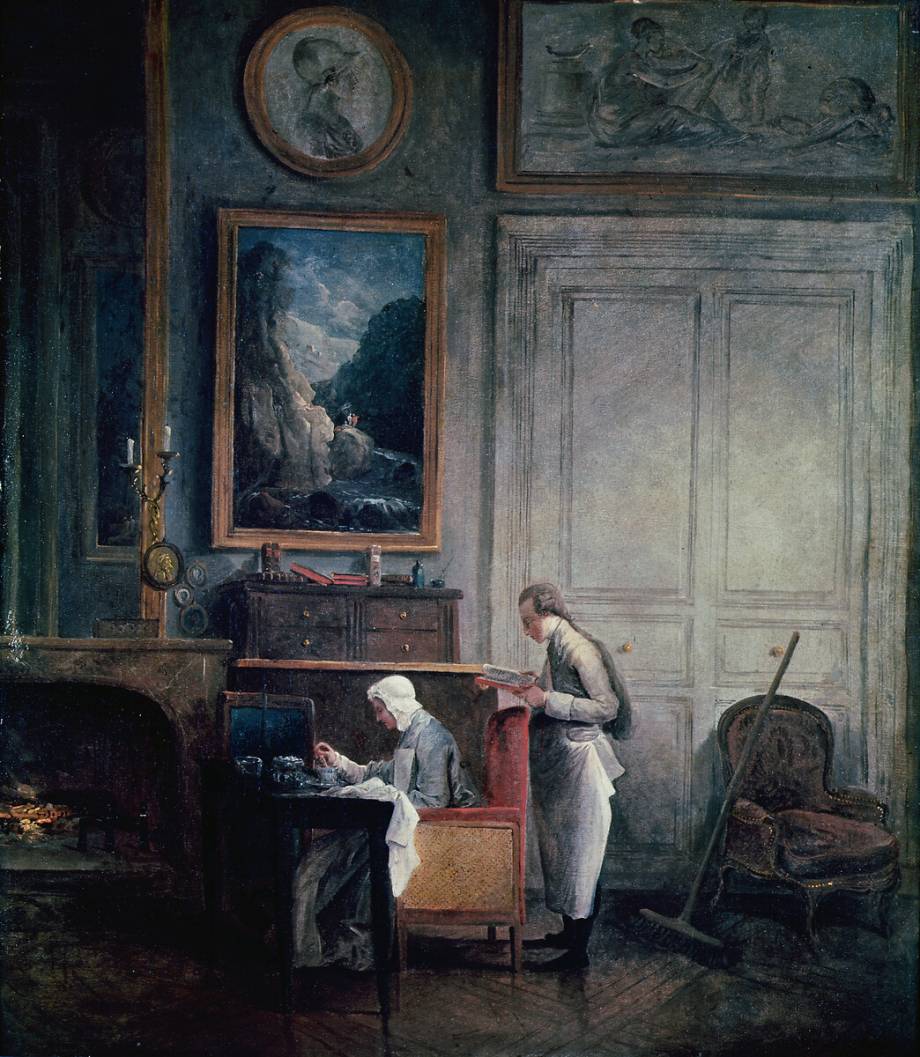 একাকী সময়ে কী করতেন এই সালঁনিয়্যেররা? সেই সময়ের প্যারির অভিজাত জীবনের অন্দরকে যাঁর তেলরং ছবি থেকে বুঝতে পারা যায়, সেই অন্যতম শিল্পী হুবের রবার্তকে দিয়ে মাদাম গ্যোফ্রিন (১৬৯৯-১৭৭৭) তাঁর ব্যক্তিগত মুহূর্তের একটি ছবি আঁকান। লেমোনিয়্যেরের আঁকা আগের ছবিতে মাদাম গ্যোফ্রিনের জমজমাট সালোঁ, জনা পঞ্চাশ কেউকেটাদের সামনে ভলতেয়্যার তাঁর লেখা পড়ে শোনাচ্ছেন। সামনের সারিতে ডান দিক থেকে তিন নম্বরে বসে আছেন মাদাম গ্যোফ্রিন। ভলতেয়্যারের ডেস্ক তাঁর দিকে ফিরিয়ে রাখা। ভলতেয়্যার নিজেও সেই দিকে ফিরে লেখা পড়ছেন।