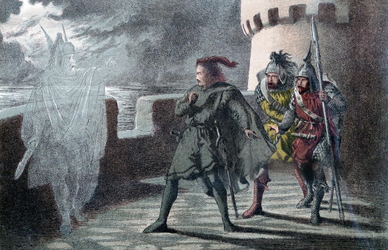এই সংক্ষিপ্ত নির্দেশের মধ্যেই রয়েছে তার ভয়াবহতা— সে কথা বলতে এসেছে, কিন্তু পূর্ণ গল্প নয়, কেবল দায়। আবার পরে সে বলে, “I am thy father’s spirit.” ভাষা গম্ভীর, আচারানুষ্ঠানিক, প্রায় ধর্মীয় — যেন সে ব্যক্তি নয়, ইতিহাসের প্রতিনিধি।