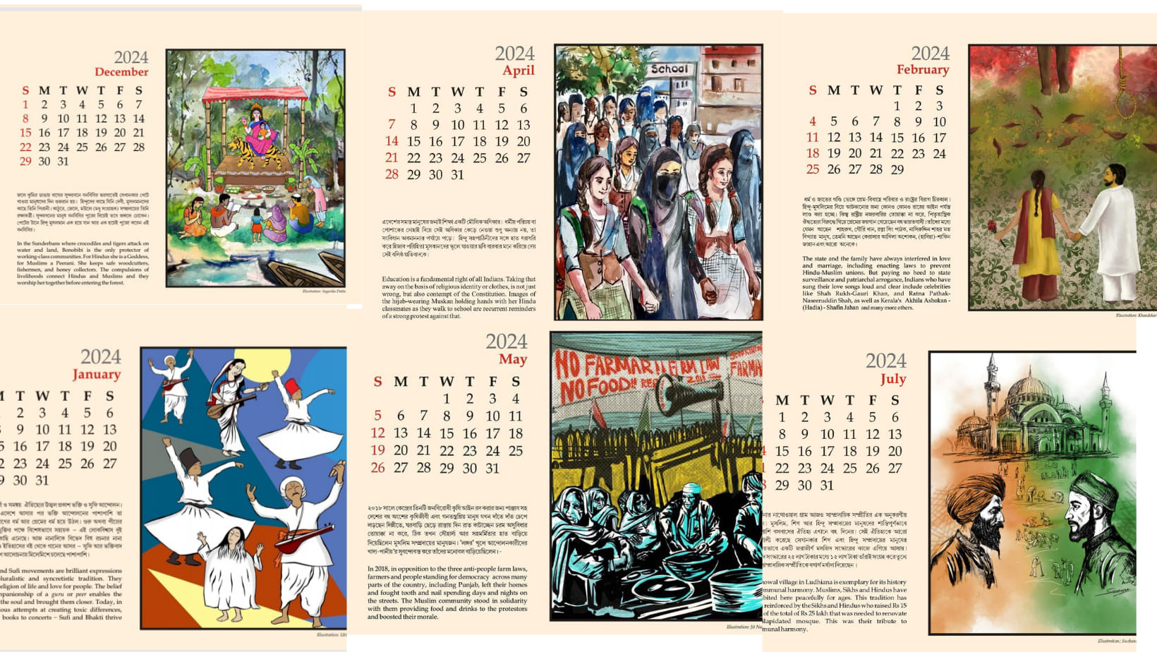মিতালী, সাগরিকা এবং আবিরের মূল ভাবনার সঙ্গে যুক্ত হয়েছেন বেশ কিছু শিল্পী। জিৎ নট্ট, শিবাঙ্গী সিং, অয়ন গোপ, বৈশালী-সহ অন্যান্যরা ফুটিয়ে তুলেছেন শিশু শ্রম, ব্ল্যাক লাইভস ম্যাটার-এর মতো আরও সমস্ত বিষয়গুলো। এই স্লোগানগুলো আসলে শুধু কোনও একটি আন্দোলনের নয়। এই ক্যালেন্ডার আসলে সময়ের জলছবি, এই ক্যালেন্ডারের প্রতিটি মাসের প্রতিটি বিষয় এবং ছবি আসলে নিজেদের এই সমস্ত ভাবনায় একটি সদর্থক অংশগ্রহণের কথাও যেমন মনে করাবে, তেমনি অন্য মানুষদেরও ভাবাতে সাহায্য করবে, এবং তাই শুধু এই আগামী ২০২৬ সালের জন্য নয়, এই ক্যালেন্ডার অবশ্যই হয়ে থাকবে একটি সংগ্রহযোগ্য বস্তু।
