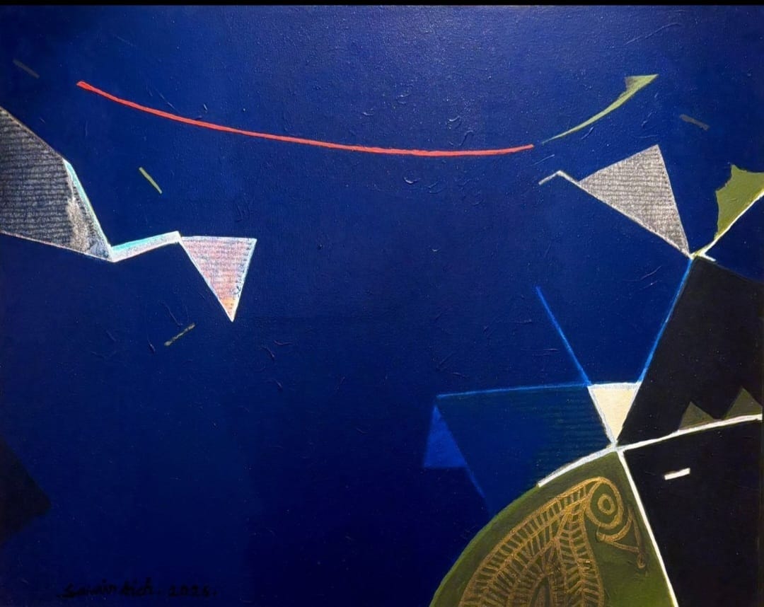 কিন্তু এবারে যে ঘটনাটা তিনি ঘটিয়ে ফেললেন, তা সম্পূর্ণ অভাবনীয়! এই বয়সে এসে নিজের ‘সিগনেচার’কে হঠাৎ বদলে ফেলতে বুকের পাটা লাগে যেকোনও শিল্পীর। পৃথিবীর খুব বেশি শিল্পী এটা পারেননি! পিকাসো পেরেছিলেন, এদেশে সুনীল দাস কিছুটা পেরেছিলেন। তবে সমীর আইচ যে-সংবেদনশীলতা নিয়ে কাজ করেন, তাতে আমাদের মনে হত যে, একদিন তিনি হয়তো এই বিন্দুতে পৌঁছবেন, যেখানে তিনি শিল্পের বহির্মুখ ছেড়ে অন্তর্মুখের দিকে প্রবেশ করবেন! ফিগারেটিভ কাজ ছেড়ে বিমূর্ততা স্পর্শ করতে চাইবেন! যেমন মাতিস বা নন্দলাল বসু শেষজীবনে করতে চেয়েছিলেন, একে হয়তো শিল্পের উচ্চমার্গে পৌঁছে শিল্পের লীলাখেলা বলা যায়! সেখানে লেখা, রং, স্পেস এক ইথারীয় তরঙ্গে একাকার হয়ে যায়!