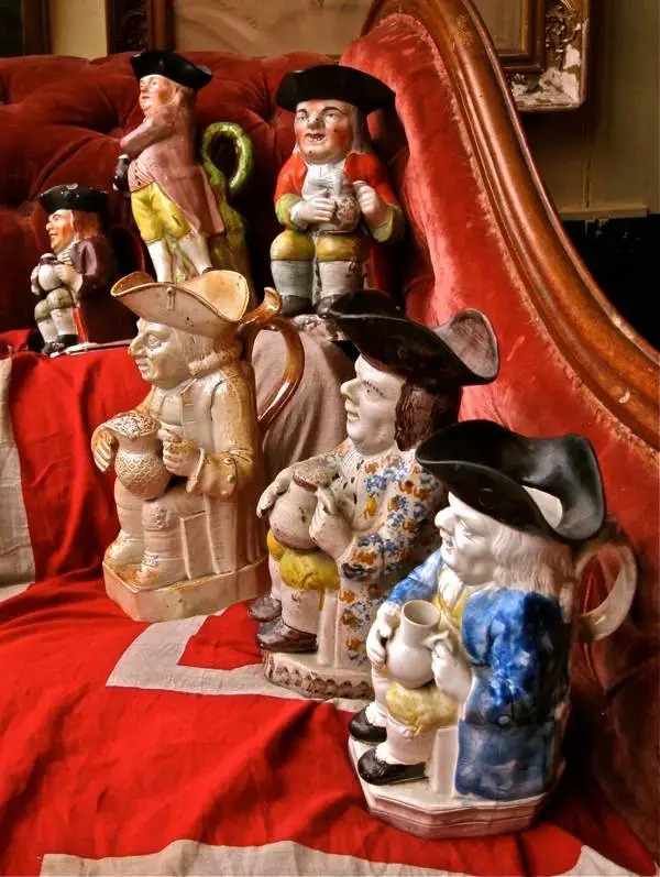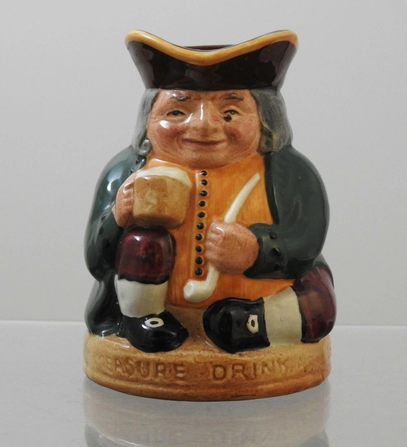 প্রথমেই আসে ঐতিহ্যের মূল ধারক টবি জগ। এর প্রধান বৈশিষ্ট্য– এতে একজন মানুষের পূর্ণাঙ্গ অবয়ব ফুটিয়ে তোলা হয়। অর্থাৎ, মাথা থেকে পা পর্যন্ত পুরো শরীরটিই এখানে দৃশ্যমান থাকে, যেখানে চরিত্রটি সাধারণত একটি চেয়ারে উপবিষ্ট অবস্থায় থাকে। যেহেতু এটি মূলত পানীয় পরিবেশন, অর্থাৎ এক পাত্র থেকে অন্য পাত্রে তরল বস্তু ঢালার জন্য তৈরি, তাই এর মাথার টুপিতে অবশ্যই একটি ‘স্পাউট’ বা ঢালার নালি থাকে। আঠেরো শতকের সেই আদিম আমেজ এই জগগুলোতেই সবচেয়ে বেশি খুঁজে পাওয়া যায়।
