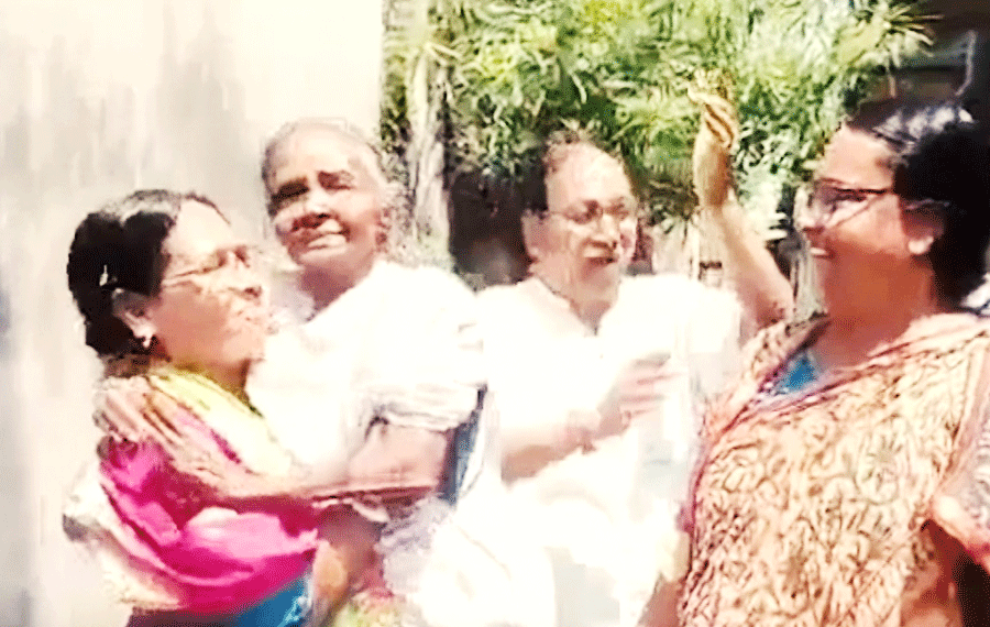 বৃদ্ধাকে কোলে নিয়ে নৃত্যরত প্রার্থী মিতালী বাগ