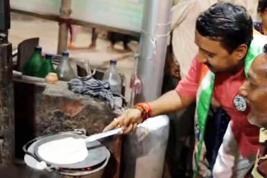 রুটি বেলছেন বালির প্রার্থী কৈলাস মিত্র