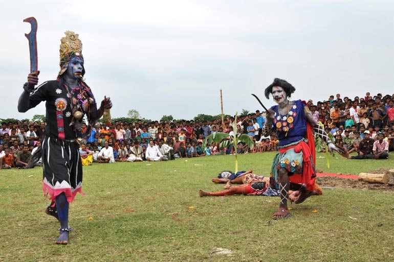 সেই একই ছবি যেন একুশ শতকের সংবিধান-সিদ্ধ, অস্পৃশ্যতা-নিষিদ্ধ ভারতে। এই বাংলার কিছু জায়গায় শিবমন্দিরে তফসিলি জাতির কিছু মানুষের প্রবেশাধিকার নিশ্চিত করে, তাদের নিষিদ্ধ পুজোকে সিদ্ধ করতে হয় কোর্টের আদেশে, পুলিশি প্রহরায়। এটা গল্প নয়, সত্যি! অথচ সংস্কৃতিগত দিক থেকে এই উৎসব অন্ত্যজদেরই। আর আইনি-দৃষ্টিতে এই উৎসব সবার। তাছাড়া দেবাদিদেব মহাদেব তো সুর-অসুর সবার উপাস্য। সামাজিকতার আড়ালে অসামাজিকতার এই বিপজ্জনক প্রবণতা যেন গণদেবতার পুজোয় গণতন্ত্রের বলি। নন্দিত পুজোর নিন্দিত অধ্যায়। অথচ যথা ভক্ত তথা তীর্থ, যথা অশ্রু তথা ত্রিবেণী।