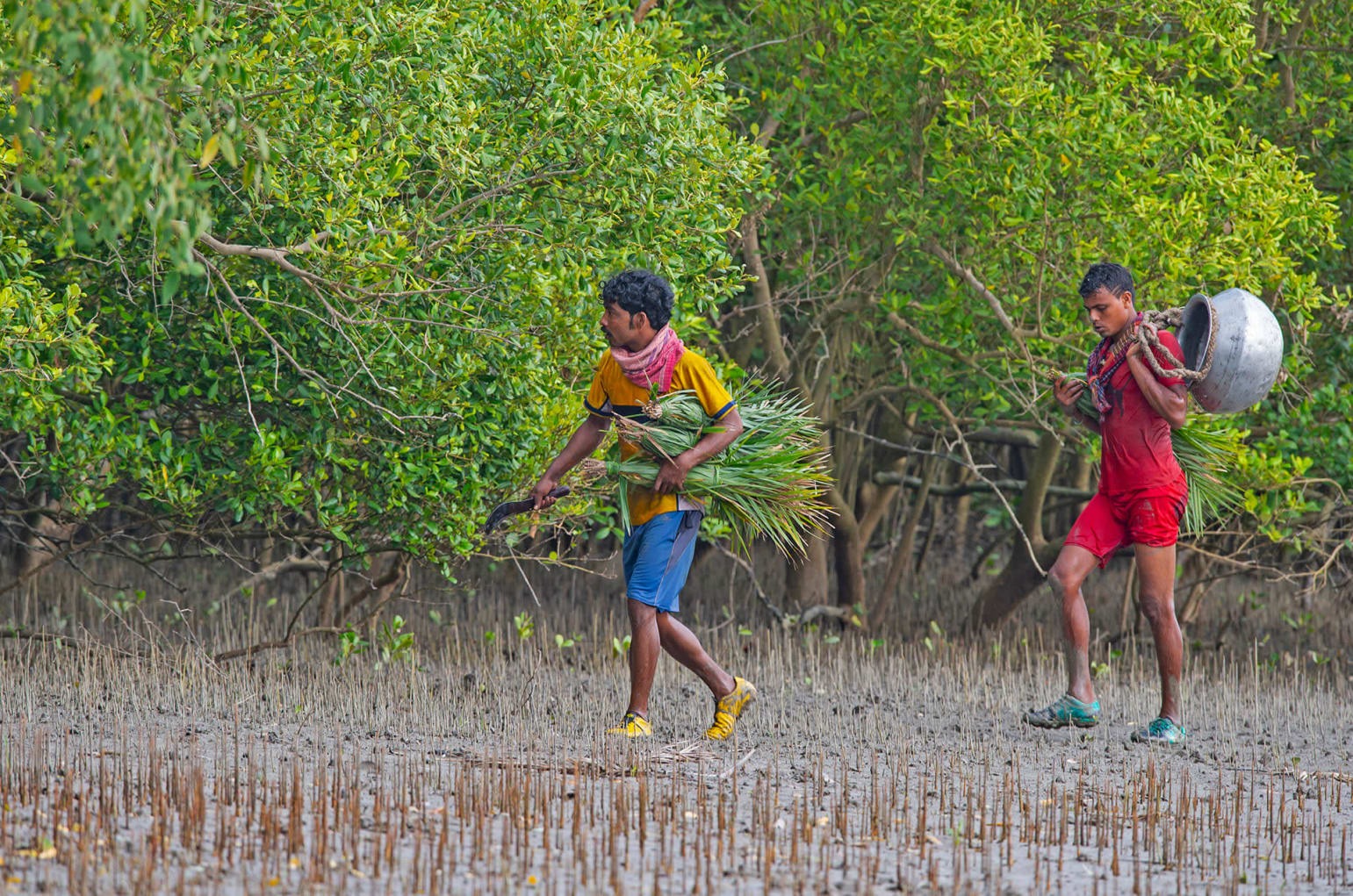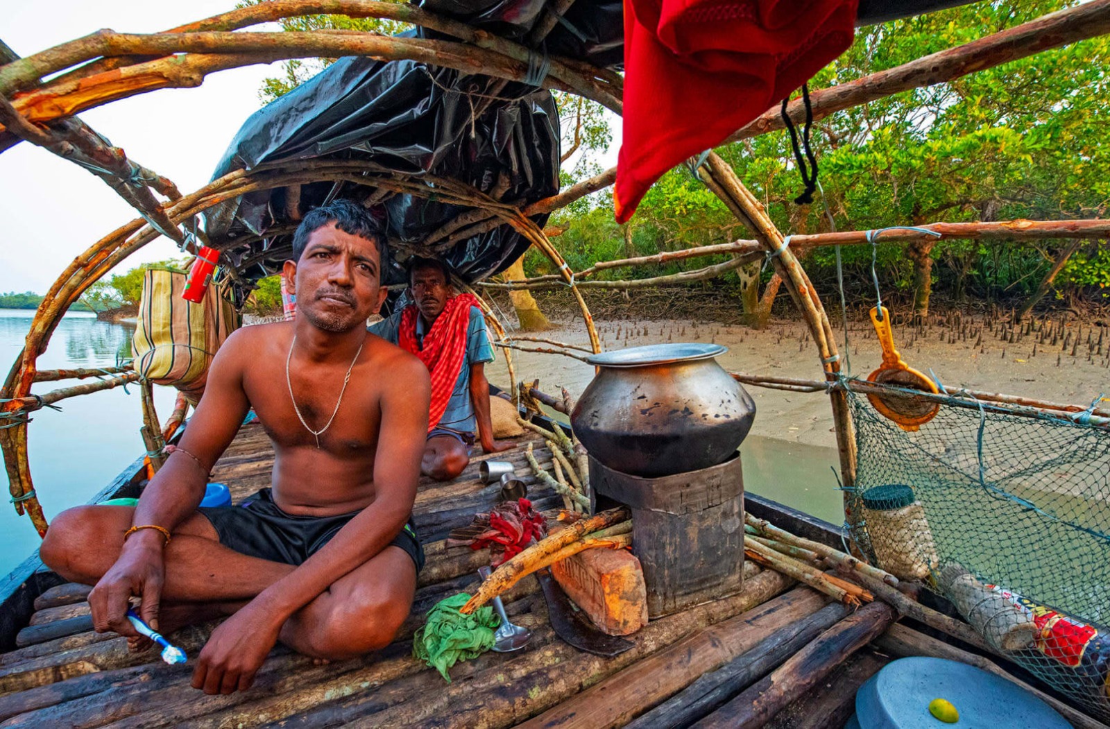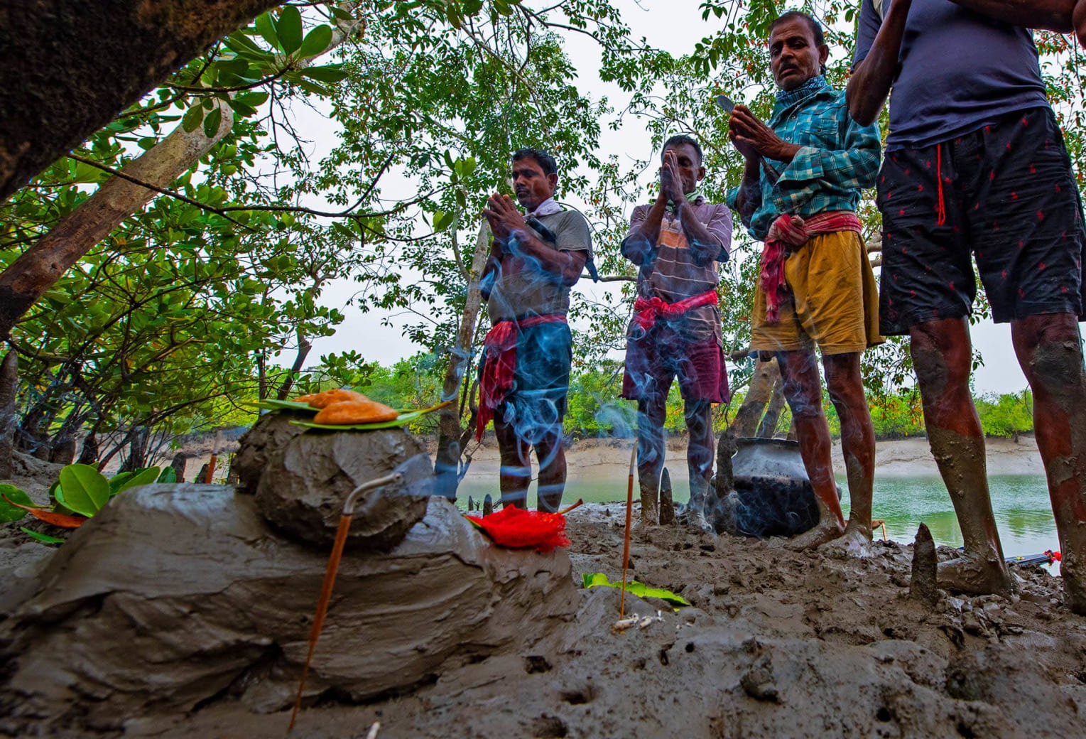 এই প্রার্থনায় মিলেমিশে একাকার হয়ে যায় হিন্দু-মুসলিম লোকদেবতা। মুসলিম মউলেরাও তেল, সিঁদুর, ধুপধুনো নিতে ভোলে না। বনের দেবী বনবিবি যেমন আছেন, আছেন দক্ষিণরায়, শাহজঙ্গুলি, সুফি পীর, জলের মালিক কালু রায়ও।