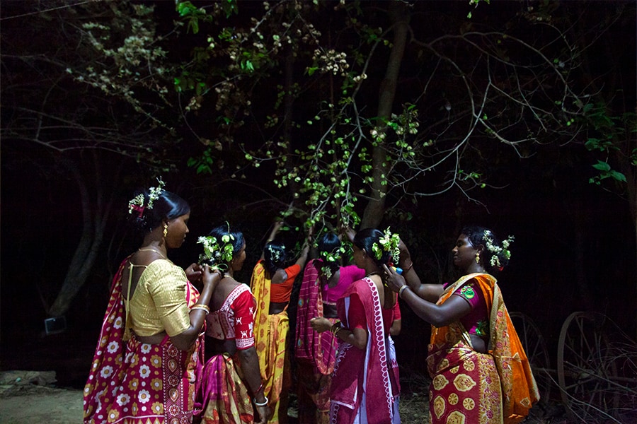বাহা পরবের প্রস্তুতিতে ব্যস্ত আদিবাসী নারীরা