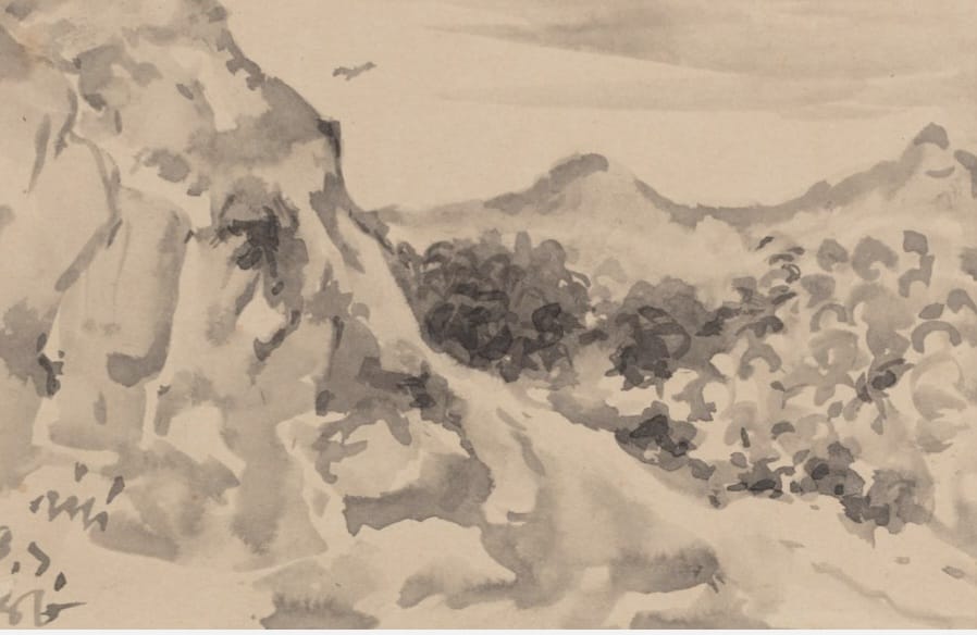সৃষ্টি, রহস্য, কল্পনা যেন আদিকাল থেকে খোয়াইকে ঘিরে রইল; লাল মাটির চরাচরে দূরে দূরে কিছু সোনাঝুরি গাছের জটলা নিয়ে এই আশ্চর্য ল্যান্ডস্কেপ শান্তিনিকেতনের শিল্পীদের স্মৃতিতে, সত্তায় কত-না উপলব্ধির মুহূর্ত নির্মাণ করে দিয়েছে। নন্দলাল বসু থেকে বিনোদবিহারী মুখোপাধ্যায় অথবা রামকিঙ্করের ছবিতে খোয়াই যেন গেরুয়া ধূসর রঙের স্তর নিয়ে, আলো-আঁধারির খেলা নিয়ে এক অর্থে বিমূর্ততার বহুপাঠ। রবীন্দ্রনাথের ‘পুনশ্চ’ কাব্যগ্রন্থের ‘খোয়াই’ কবিতাটি তীব্র আবেগ-স্পন্দিত অভিঘাতের একটি দৃশ্যরূপই হয়ে ওঠে যখন খোয়াই দেখে কবি বলে ওঠেন, ‘ক্রন্দিত আকাশের নীচে ওই ধূসর বন্ধুর/ কাঁকরের স্তূপগুলো দেখে মনে হয়েছে/ লাল সমুদ্রে তুফান উঠল,/ ছিটকে পড়ছে তার শীকরবিন্দু।’ কবির দৃষ্টি একবার ‘বাগান, বন-চষা ক্ষেত’, রাঙা মাটির চলার পথের দিকে, আর পরক্ষণেই ‘বুক-ফাটা ধরণীর রক্তিমা’-র দিকে– পূর্ণতা আর শূন্যতার চিহ্ন মিলিয়ে বিপুল প্রকৃতি-রহস্যের অন্তর্লগ্ন সত্যগুলি ছুঁয়ে যায় তাঁর মন।
