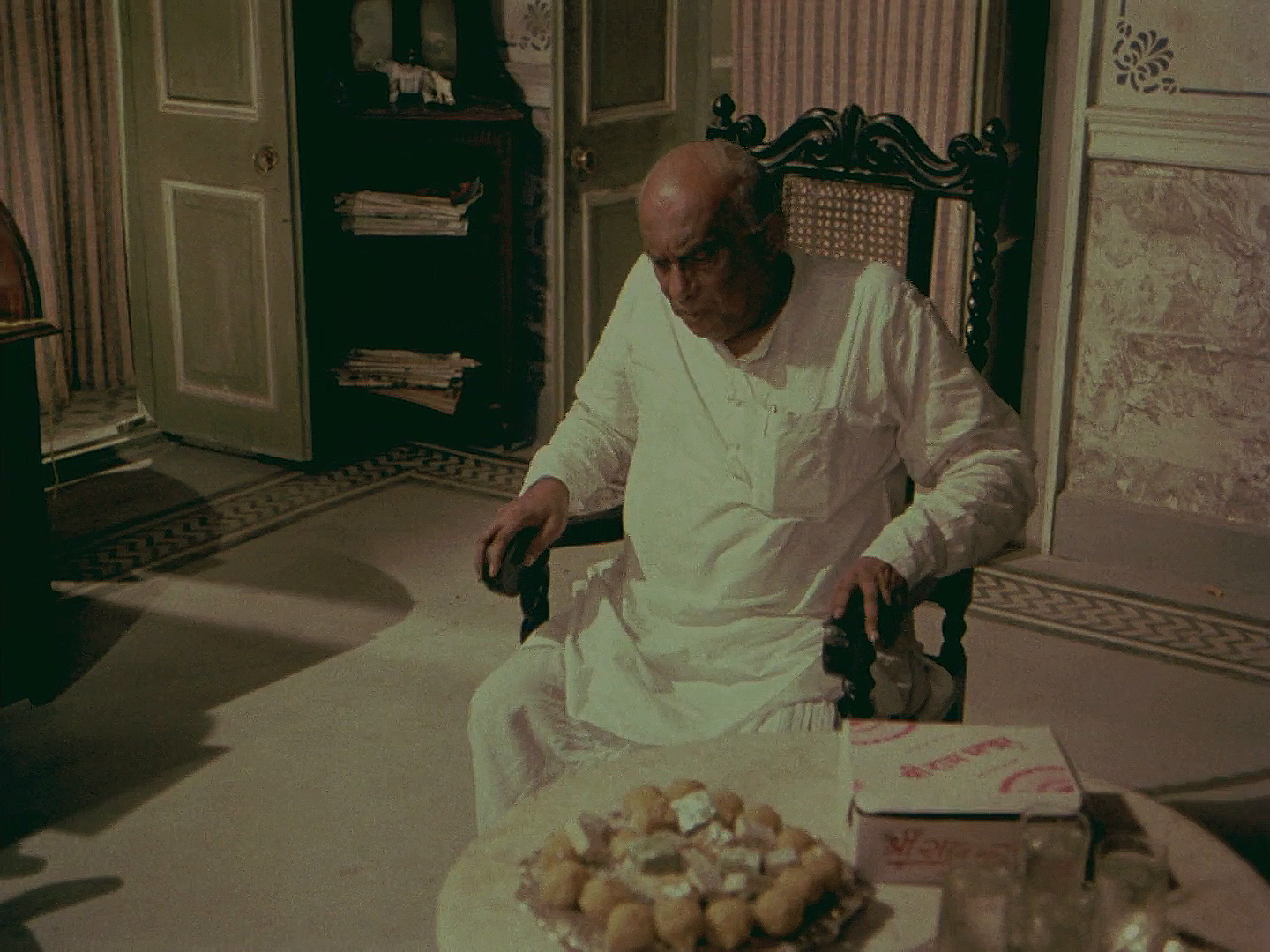 ‘ঘরে বাইরে’ (১৯৮৪) ছবিতে পোড় খাওয়া রাজনৈতিক ব্যক্তিত্ব সন্দীপ তার বন্ধু নিখিলেশের স্ত্রী বিমলার হাতে তৈরি মিষ্টি খেতে অস্বীকার করেনি। সেই জের শেষ পর্যন্ত যে কতদূর গড়িয়েছিল, তা যাঁরা ছবিটি দেখেছেন তাঁরা প্রত্যেকেই জানেন। তেমনই ৩৫ বছর পর দেশে ফেরা মনমোহন মিত্র যখন তাঁর ভাগনি অনিলার বাড়ি এসে উপস্থিত হন, তখন সংস্কৃতির ধারা মেনে ঠিকই জিজ্ঞেস করেন, ‘আচ্ছা ভীম নাগ, তারপর… গাঙ্গুরাম, এসব দোকান আছে এখনও?’ বহুদিন সংযোগ বিচ্ছিন্ন, পাছে অনামী দোকান থেকে মিষ্টি এনে অতিথি হিসেবে সমালোচনার মুখে পড়েন– তাই ও পাট তিনি রাখেননি বলে ভাগনিকে বলেন ভূপর্যটক মনোমোহন। কাজেই সত্যজিতের শেষ ছবি ‘আগন্তুক’ (১৯৯১)-এও বহাল ছিল মিষ্টিসূত্র।