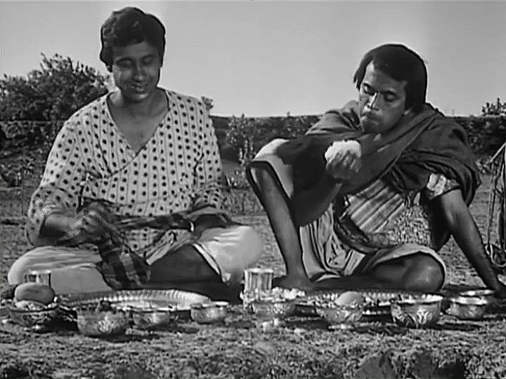 চিনিবাস ময়রা ঘণ্টা বাজিয়ে, বাঁক কাঁধে নিয়ে হাজির হলেই, গ্রামে ভারি আনন্দের লহর বয়ে যায়। হাঁড়িতে ভরা সরভাজা, চন্দ্রপুলী ও আরও হরেক রকমের মিষ্টির টানে, ভিড় জমায় কচিকাঁচার দল। সাধ আর সাধ্যের মধ্যে যে বিস্তর প্রভেদ, তা টের পায় অপু আর তার দিদি দুর্গা। তারা গরিব। ফলে চিনিবাস ময়রা যখন শুধোয়, ‘নেবে না?’ তখন কষ্ট হলেও মাথা নেড়ে, ‘না’ বলে দুর্গা। চিনিবাস তখন পুকুরপাড়ের পথ ধরে। পিছনে পিছনে দৌড়য় অপু, দুর্গা আর তাদের বাড়ির ‘ভুলো’ কুকুরটি। মিষ্টির হাঁড়ি যেন তাদের দৈনন্দিন দারিদ্রের মাঝে এক আলাদিনের চেরাগ– দুর্লভ আনন্দের উপকরণ। নাই বা পেল তারা কিনতে, অন্য কেউ তো কিনবে– সেইটা দেখতে পারাও তাদের কাছে আনন্দের; আর তাতে করে যদি দু’-একটা মিষ্টি চেখে দেখার সুযোগ মেলে, তবে তো সোনায় সোহাগা!