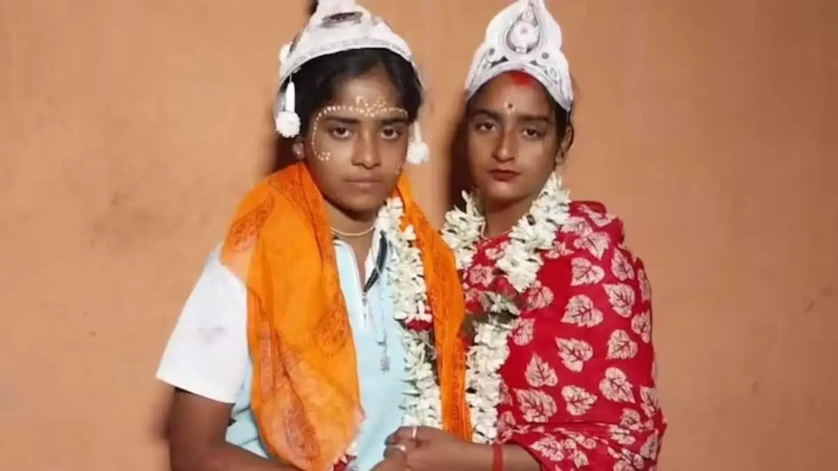 দক্ষিণ চব্বিশ পরগনার ঘটনা। দুই তরুণী সামাজিক বিয়েতে আবদ্ধ হলেন। এই অবধি শুনে বা পড়েই একটা টালমাটাল শোরগোলময় টানাপোড়েনের ছবি হয়তো ভেসে উঠছিল সবার মনেই। নিশ্চয়ই বাড়িতে কেউ মেনে নিচ্ছে না, পাড়ায় ঢি-ঢি পড়ে যাচ্ছে, গ্রামময় ছিছিক্কারের ধুলো উড়ে এসে পাক খাচ্ছে চায়ের ঠেক থেকে শুরু করে মুদি দোকানের নড়বড়ে বেঞ্চ পর্যন্ত! নিশ্চয়ই বহুদিন ধরে লুকিয়ে দেখাসাক্ষাৎ করত, ধরা পড়েছে, নিশ্চয়ই সালিশি সভা বসেছে, পালানোর মতলব করেছে হয়তো অনেকবার, একসঙ্গে আত্মহত্যার চেষ্টাও হয়তো আর বাকি নেই, শেষে নিশ্চয়ই জোর করেই বিয়ে করতে বসেছে ওরা! সবাই নিশ্চয়ই যা-তা বলছে ওদের! অশ্লীল বিশেষণ আর চোরাগোপ্তা আক্রমণের ধারালো কোপ থেকে একটা রক্তপাতও নিশ্চয়ই বাদ যাচ্ছে না! আবারও সেই এক সমকামী যুগলের সামাজিক যুদ্ধের হারজিতের মার্কশিট খোলা হচ্ছে গণমাধ্যমের পাতায়, একথা বোধহয় অজান্তেই ধরে নিয়েছিল সবাই। অমীমাংসিত আইনের কাঁটাতারের দু’-পাশে অস্বচ্ছ কুয়াশা তৈরি করে রাখা দড়ির দু’-প্রান্ত ধরে অচিরেই তরজায় মেতে ওঠার যাবতীয় সম্ভাবনা ভেবে চোখ চকচক জিভ লকলক করে উঠেছিল সামাজিক জেঠুদের।