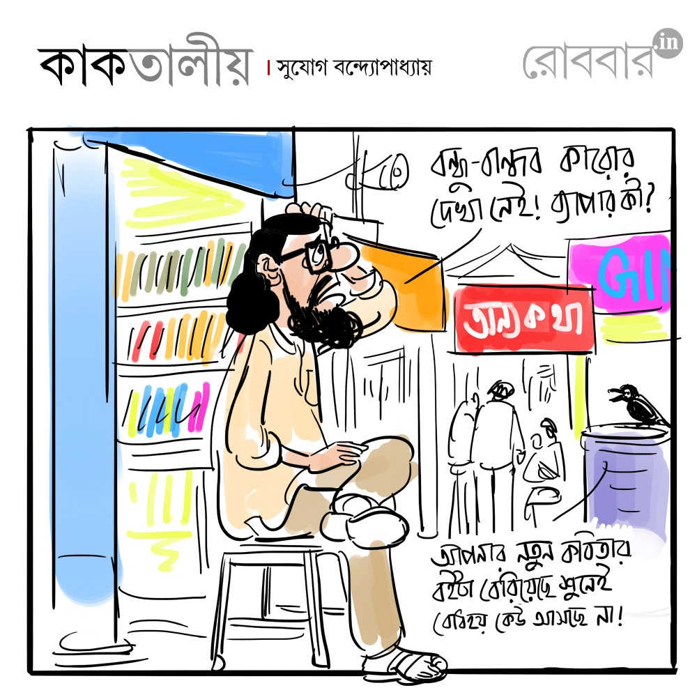 ও হ্যাঁ, বইমেলা উপলক্ষে রোববার.ইন-এর দুটো ‘স্পেশাল’ ঘোষণা রয়েছে। এক, সুযোগ বন্দ্যোপাধ্যায়, রোজদিনই একটি করে ‘কাকতালীয়’ রোববারের পাঠকদের জন্য আঁকছেন। বইমেলার দিনগুলোয়, প্রত্যেক দিন তা দেখতে পাবেন আমাদের ফেসবুক পেজে ও এই কড়চার সিরিজে। এছাড়া, একদল পাঠক দেখেছি, বইমেলায় খাবার কেন বিক্রি হবে, সে নিয়ে খুব উদ্বিগ্ন। বইয়ের সঙ্গে খাদ্যের যে খুব ধুন্ধুমার সম্পর্ক ছিল, এমনটা তো মনে হয় না। তাছাড়া, বহু মানুষ দূরদূরান্ত থেকে আসেন। তাঁদের জন্য যথোপযুক্ত খাবার ব্যবস্থা না-থাকলে মেলা চলবে কী করে। শুধু ক্রেতাদের কথা ধরলে ভুল হবে, বইমেলায় প্রকাশক, বইকর্মী, নিরাপত্তাকর্মী, পুলিশ, স্টলের কারিগর ছাড়াও বহু মানুষ নিযুক্ত থাকেন এই আন্তর্জাতিক পুস্তকমেলায়। তাঁদের ক্ষুধা নিবারণের জন্যও কি খাবারের স্টল চক্ষুলজ্জাকর? যদি কেউ অনেক বই কিনে, এমনকী, একটি বইও যদি না কিনে বইমেলায় ঘুরেফিরে– ভিড়ের স্বাদ নিয়ে একটু ফিশফ্রাই খেতে চান, তাহলে সমস্যাটা কোথায়? বইমেলার অর্থনীতিতে বিরিয়ানি-ফিশফ্রাইয়ের অবদানও কিছু কম নয় কিন্তু! এই মেলার শেষ সাত দিন রোববার.ইন মিলিয়ে-মিশিয়ে দেবে বাংলা বই ও খাবারকে! কী উপায়ে? বাংলা ভাষায় লেখা নানা ‘উপাদেয়’ খাবারের বই ফিরে পড়ে। খাবার ও বই মিলিয়ে ‘খাবারের বই’-ই আমাদের এবারের বিষয়!