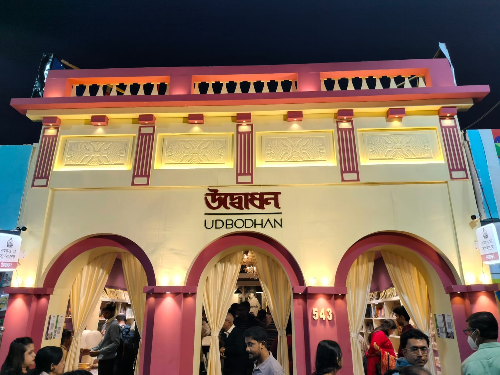 মেলার চারদিকেই শব্দের বাগান, স্বপ্নের দৃশ্য। চোখ কচলে, গায়ে চিমটি কেটে নিজেকে আশ্বস্ত করার প্রয়োজন নেই। যাহা ঘটিল, তাহাই সত্য। স্টলে স্টলে দলে দলে লোক যে ভেসে যায়। লালমাটির স্টলের সামনে পকেটভর্তি নুড়িপাথর নিয়ে যাওয়ার প্রয়োজন নেই, ৯ নম্বর গেটের কাছেই আস্ত একখানি লালরঙা ‘পদিপিসীর বর্মিবাক্স’ সগৌরবে বিরাজমান। ছোটদের এবং ‘বড়দের মতো দেখতে’– ছোটদের নিজস্ব ‘পেরিস্তান’ তো এখানেই! বিশ্বভারতী-র এ বছরের স্টল অবিকল রবীন্দ্রনাথের ‘শ্যামলী’ বাড়ির আদলে, তেমনই মাতৃশক্তি-র মণ্ডপ প্রতিবছরের মতো দক্ষিণেশ্বরের মন্দিরের অনুকৃতি। পরিমিতিবোধ আর নান্দনিকতার মিলমিশে ‘উদ্বোধন’ এবং ‘প্রতিক্ষণ’ তাঁদের ঐতিহ্য ধরে রেখেছেন। যদিও শেষোক্ত স্টলে ছবি তোলার ব্যাপারে কড়াকড়ি খানিক মাত্রাছাড়া।