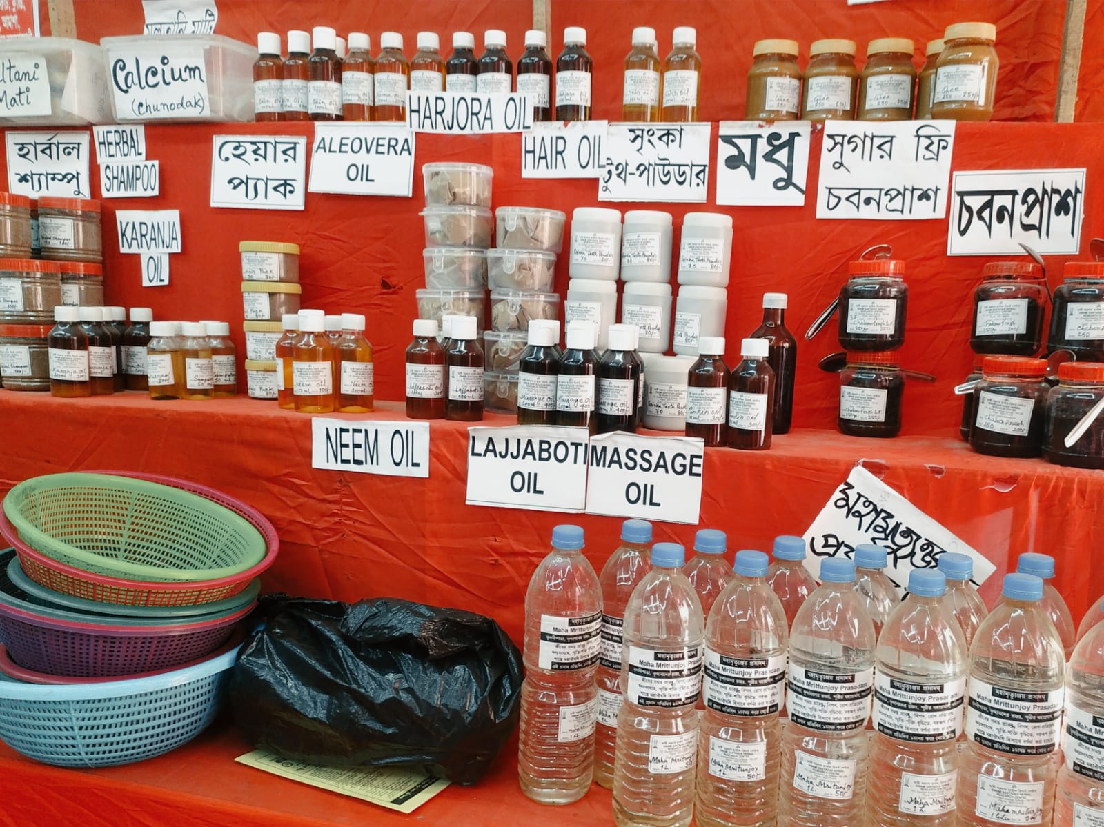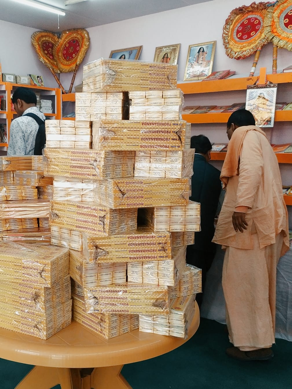 তবে এ বছর সব গন্ধকে মাত দিয়েছে ধূপধুনোর গন্ধ। এ গন্ধটা কিন্তু বেশ সন্দেহজনক। বেশ কিছু ধর্মীয় স্টল এবার ম-ম করছে ধূপধুনোঅগুরুচন্দনের গন্ধে। কেউ কেউ সঙ্গে রেখেছেন ঘি-মধু। চাইলে মিলতে পারে চা-চুরন-চবনপ্রাশ-হেয়ার অয়েল-ম্যাসাজ অয়েল থেকে প্লাস্টিকের বোতলে ভরা মহামৃত্যুঞ্জয় প্রসাদ। ‘বিশেষ আকর্ষণ: প্রাকৃতিক ভারসাম্য, শরীর নিরোগ ও মানসিক সুস্থতার জন্য– গো-ধূপ এবং গোবর থেকে তৈরী বিভিন্ন সামগ্রী’। বিজ্ঞাপনের উপরে একটি দণ্ডায়মান বলীবর্দ।