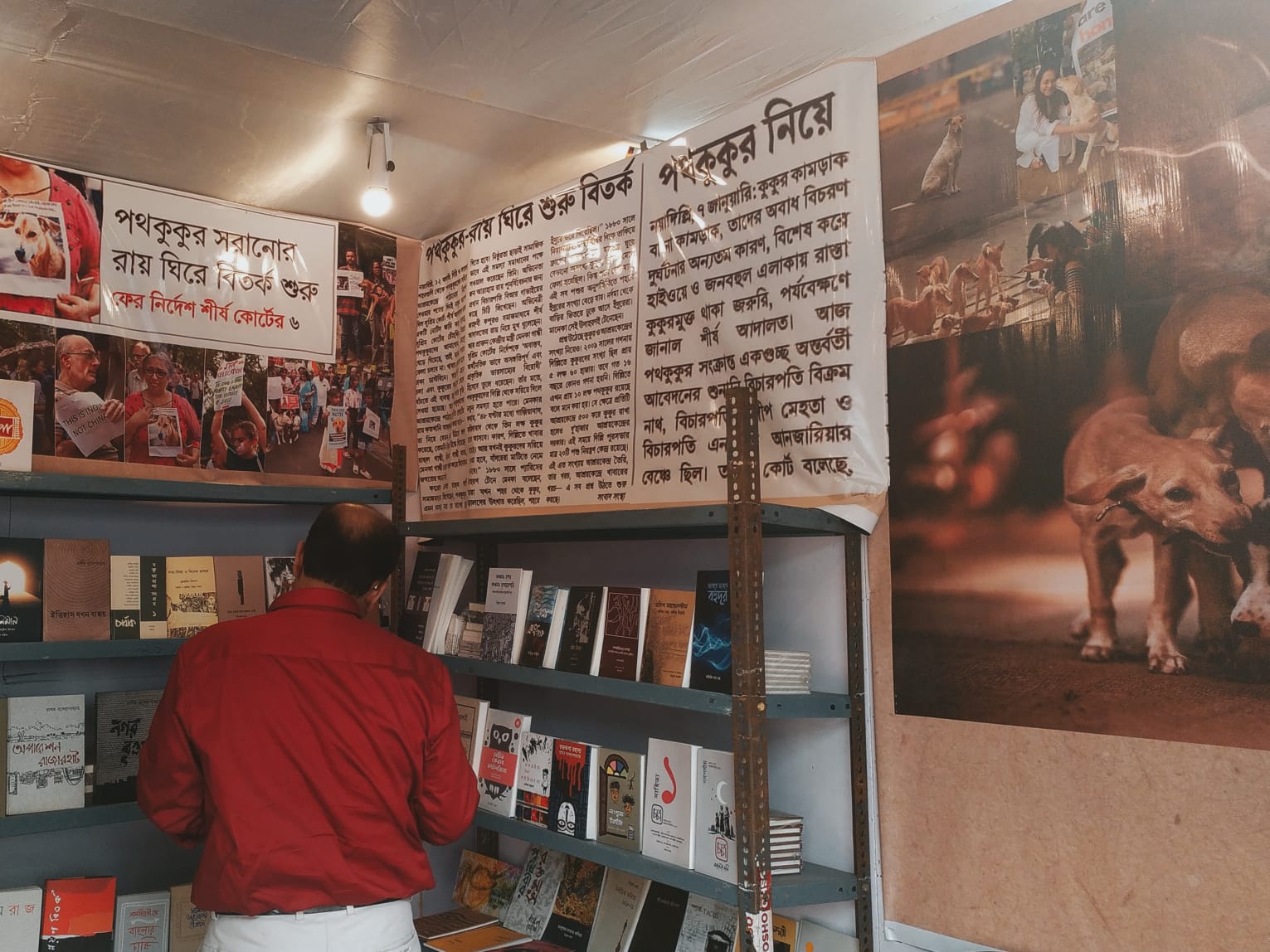 ভালো বই আদপে ভাবায়। ভুলতে দেয় না। ভালো স্টলও। পথকুকুরদের বিলোপ করার যে সাম্প্রতিক রায় আমরা প্রায় ভুলতে বসেছিলাম, সেকথা আরেকবার স্মরণ করিয়ে দিল তৃতীয় পরিসরের স্টল। ছোট্ট একফালি মানবিক স্টলটিকে তাঁরা সাজিয়েছেন এ সংক্রান্ত ছবি এবং পেপার কাটিং দিয়ে। নিঃসন্দেহে সাধুবাদযোগ্য।