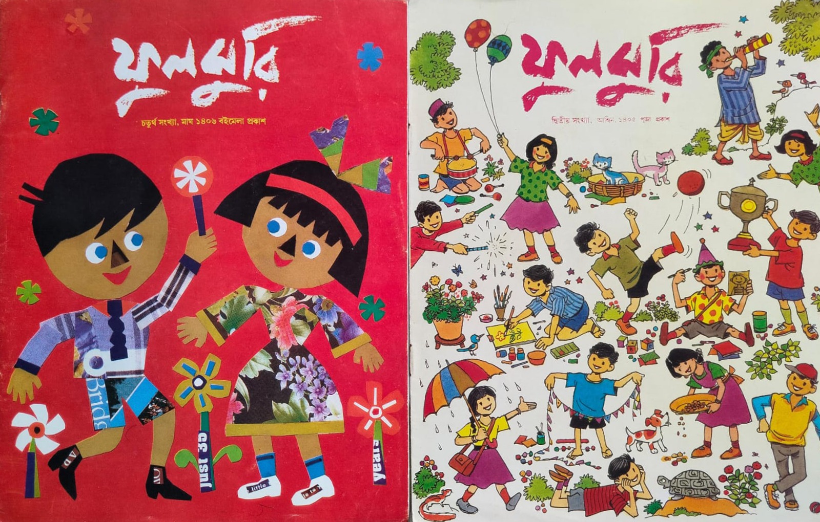 নতুন, পুরনো বা ‘পুরনোতুন’– বইয়ের জগতে ছবির দৌরাত্ম্য কেমন, বা কতটা, তা বুঝতে গিয়ে মেলায় সেঁধোতেই ভরদুপুর। লিটল ম্যাগাজিন প্যাভিলিয়ন তখন বইয়ের গন্ধে ম ম। বাইরের সারির একটি টেবিলে চোখ পড়তেই ম্যাজিক! ঝপ করে হস্তগত হল ছোটদের পত্রিকা ‘ফুলঝুরি’-র দু’টি পুরনো সংখ্যা! মলাট এঁকেছেন দেবাশীষ দেব। ১৯৯৮ সালের পুজো এবং ১৯৯৯-এর বইমেলায় প্রকাশিত বইদু’টির কয়েকটি কপিই আর অবশিষ্ট ছিল। ২৮ বছর বয়সী সংখ্যা দু’টি ঝলমলে ছবির জোরেই চিরনবীন।
