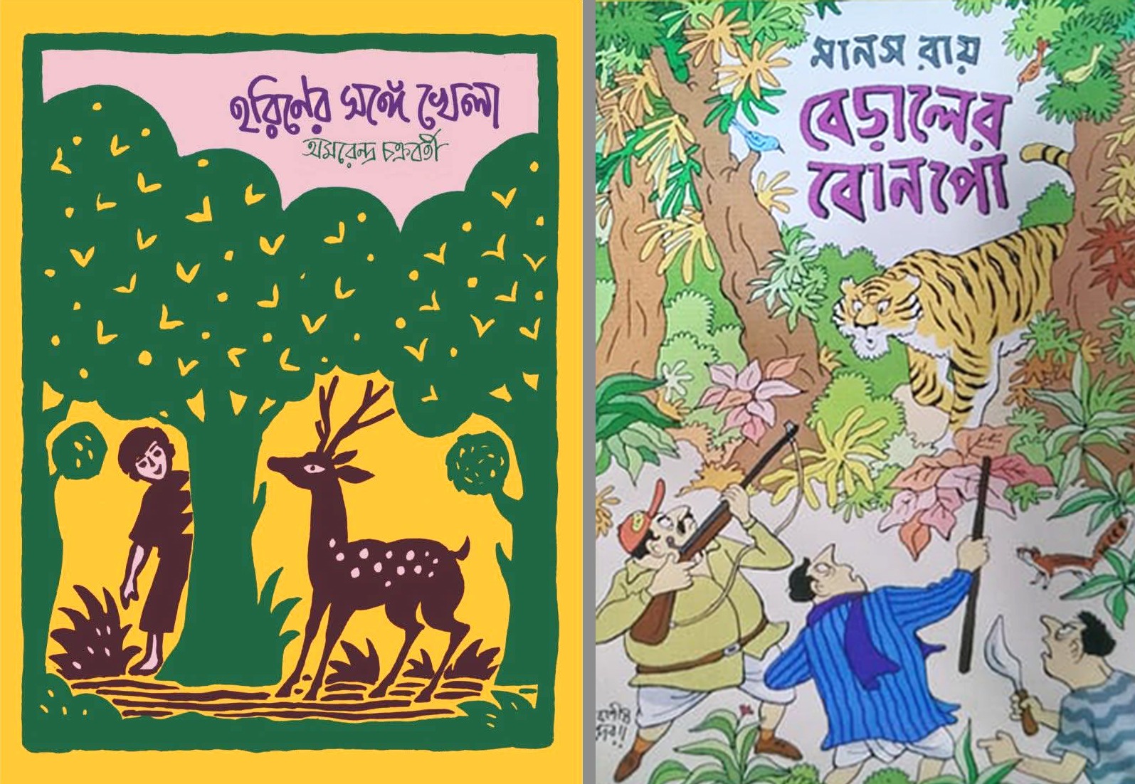 ছোটদের প্যাভিলিয়নের অদূরেই একটি মঞ্চ, তাতে ‘আমরা আনিব নূতন প্রাণ’ শীর্ষক সুবিশাল ব্যানার ছবিতেও যে দেবাশীষ দেব, সেই তিনিই স্বর্ণাক্ষরের স্টলে অন্য আমেজ এনে দেন ‘হরিণের সঙ্গে খেলা’ বইয়ের প্রচ্ছদে। অমরেন্দ্র চক্রবর্তীর লেখা এই বইটি বহুদিন পরে হুবহু এক অবয়বে ফিরে এসেই ফুরিয়েও গেল!