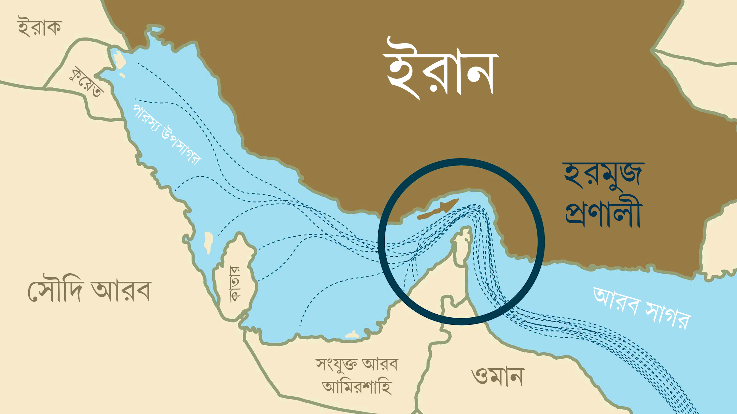 ইরানের যুদ্ধকে কেন্দ্র করে এই মুহূর্তে দুনিয়া জুড়ে সবচেয়ে বেশি আলোচিত বিষয় ওমান ও ইরানের মধ্যবর্তী হরমুজ প্রণালী। দক্ষিণে গালফ অফ ওমানের সঙ্গে পারস্য উপসাগর এবং আরব সাগরের সংযোগ ঘটিয়ে ভারত মহাসাগরকে যুক্ত করেছে গুরুত্বপূর্ণ এই জলপথ। হরমুজ প্রণালী দৈর্ঘে ১০৪ মাইল বা ১৬৭ কিমি। আর প্রস্থে প্রায় ৬০ মাইল থেকে কোথাও আবার আরও সংকীর্ণ হয়ে মাত্র ২৪ মাইল। জাহাজে জাহাজে সংঘর্ষ এড়াতে সেখান দিয়ে নির্দিষ্ট নিয়ম মেনে জাহাজ চালাতে হয়। ট্রাফিক সেপারেশন স্কিম (টিএসএস) অনুযায়ী, একটি লেন দিয়ে আসার জাহাজ, আর একটি লেন দিয়ে বেরনোর জাহাজ চলে। প্রতিটি জাহাজ চলাচলের পরিসর মাত্র দুই মাইল বা তিন কিমি প্রশস্ত। দু’টি লেনের মাঝে আবার একটি দুই মাইলের বিভাজন রেখা। ভৌগোলিক অবস্থান ও এমন বৈশিষ্ট্যের কারণে হরমুজ প্রণালী আন্তর্জাতিক অর্থনীতিতে ইরানকে অভিনব ক্ষমতা জুগিয়েছে। কাজেই এই সংকীর্ণ জলপথের নিয়ন্ত্রণ কার্যত ইরানের হাতে। হরমুজের দখলদারি ঘুচিয়ে নিজস্ব প্রতিপত্তি প্রতিষ্ঠা করতে আমেরিকা লড়ছে ইরানের সঙ্গে। আর তার জেরে বিশ্ব বাজারে তেল ও গ্যাসের দাম ও সংকট হু হু করে বেড়ে চলেছে। তবে তীব্র সংকটের মাঝেও বিরাট স্বস্তির খবর, ভারতকে ‘বন্ধু’ স্বীকার করে ইরান ভারতীয় জাহাজগুলিকে বিনা বাধায় হরমুজ পেরনোর ছাড়পত্র দিয়েছে। ইতিহাসের পাতা ওল্টালে দেখা যায় হরমুজের নিয়ন্ত্রণ নিয়ে এই সংঘর্ষ আজকের তো নয়ই, বরং শত শত বছর ধরে বিভিন্ন সাম্রাজ্যের মধ্যে চলেছে এই সাংঘাতিক লড়াই।